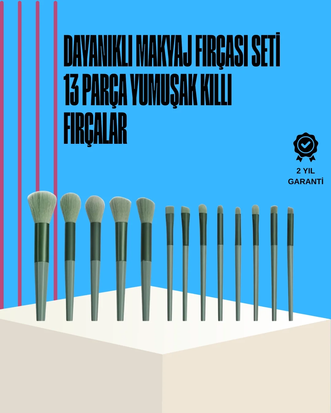 Bu 13’lü makyaj fırçası seti, güçlü toz tutma özelliğine sahip yoğun fiber kıllarıyla makyaj ürünlerinin ciltte sabitlenmesine yardımcı olur. Farklı boyutlardaki fırçalar, göz makyajı, yüz şekillendirme, kapatıcı ve fondöten uygulamaları gibi birçok alanda kullanım kolaylığı sunar. Hafif ve taşınabilir yapısı, çantanızda ya da makyaj organizatörünüzde yer kaplamadan saklanabilir. Ergonomik sapları ise uzun süreli kullanımlarda bile konfor sağlar.