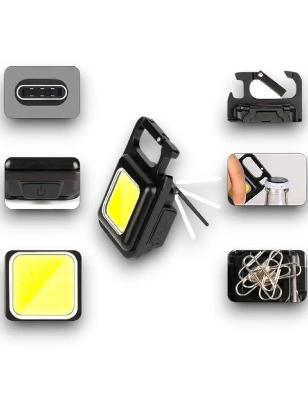Süper Parlak 800 Lümen LED Işık: Güçlü aydınlatma kapasitesi ile en karanlık ortamlarda bile rahatça yolunuzu bulabilirsiniz. 3 Işık Modu: İhtiyacınıza göre ayarlanabilir düşük, orta ve yüksek parlaklık modları sunar. USB Şarj Edilebilir: Dahili USB bağlantısı sayesinde kolayca şarj edebilir ve uzun süreli kullanım sağlayabilirsiniz. Şişe Açacağı: Entegre şişe açacağı, acil durumlarda veya eğlenceli anlarınızda kullanabileceğiniz ekstra bir fonksiyon sunar. Taşınabilir ve Hafif Tasarım: Anahtarlık boyutundaki bu fener, her zaman yanınızda taşıyabileceğiniz kadar küçük ve hafiftir.Bu mini LED fener, yalnızca bir fenerden fazlasını arayanlar için mükemmel bir çözümdür. İster kamp yapın, ister günlük kullanım için yanınızda bulundurun, her zaman hazır olmanızı sağlar!