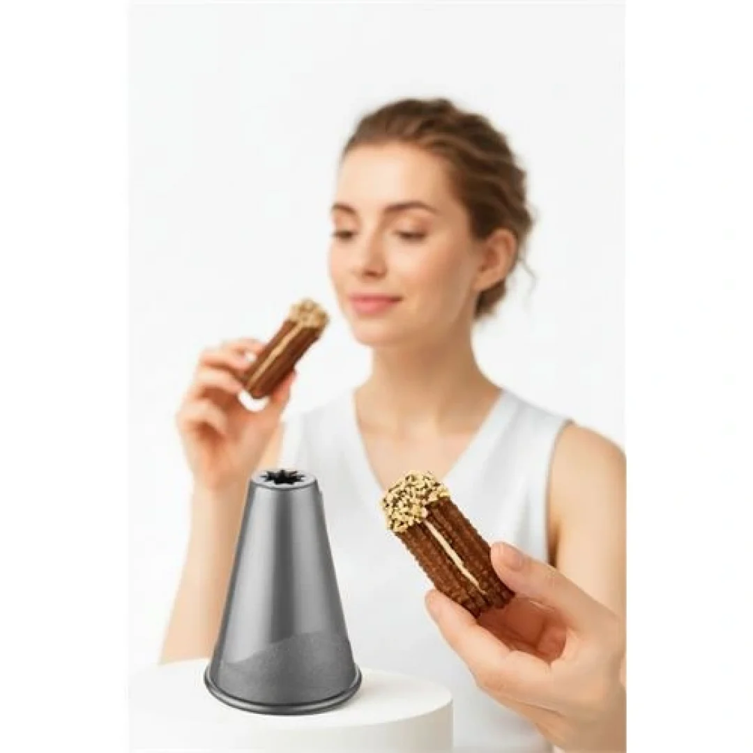 Küçük huni stilindedir ve hamur içine doldurulup Boru ucuna hamuru dışarı itmek için baş parmağınızı kullanın.