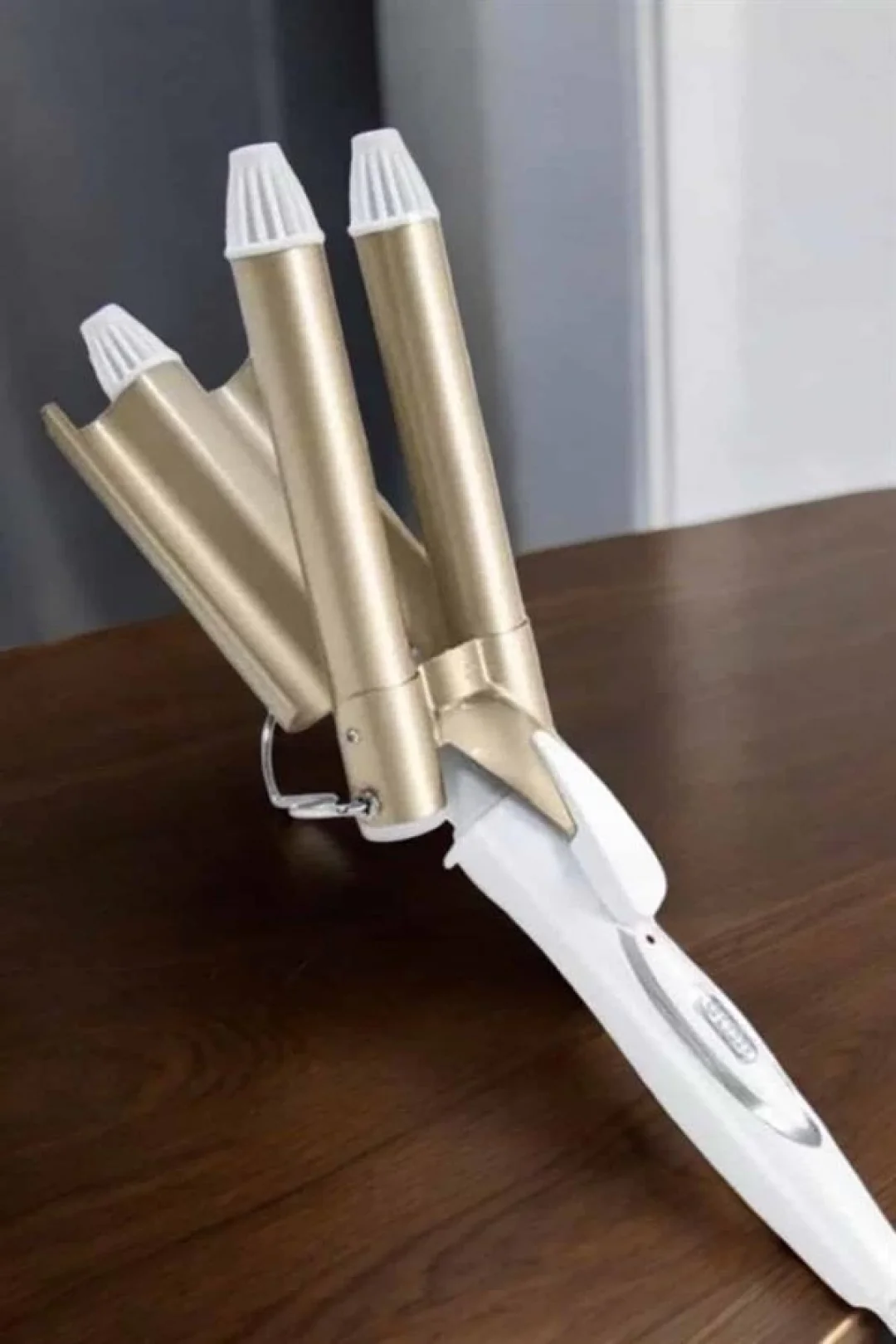 Seramik kaplama teknolojisiyle üretilen bu saç maşası, saçınıza zarar vermeden profesyonel sonuçlar elde etmenize yardımcı olur. Negatif iyon salınımı sayesinde saçtaki elektriklenmeyi azaltır ve doğal parlaklığı korur. 25 mm çapında üç namlulu tasarımı, orta ve uzun saçlarda hacimli ve kalıcı bukleler oluşturur. Hızlı ısınan PTC ısıtma sistemi, 30 saniye içinde 170°C'ye ulaşarak zamandan tasarruf etmenizi sağlar. Ayrıca 220°C'ye kadar ayarlanabilir sıcaklık kontrolü, farklı saç tipleri ve şekillendirme ihtiyaçlarına uygunluk sunar. Kaymaz tutamaç, ısı yalıtımlı ön braket ve haşlanma önleyici üst tasarımıyla güvenli ve pratik bir kullanım deneyimi sağlar. Altın rengi modern tasarımı ile şıklık ve işlevselliği bir arada sunar.