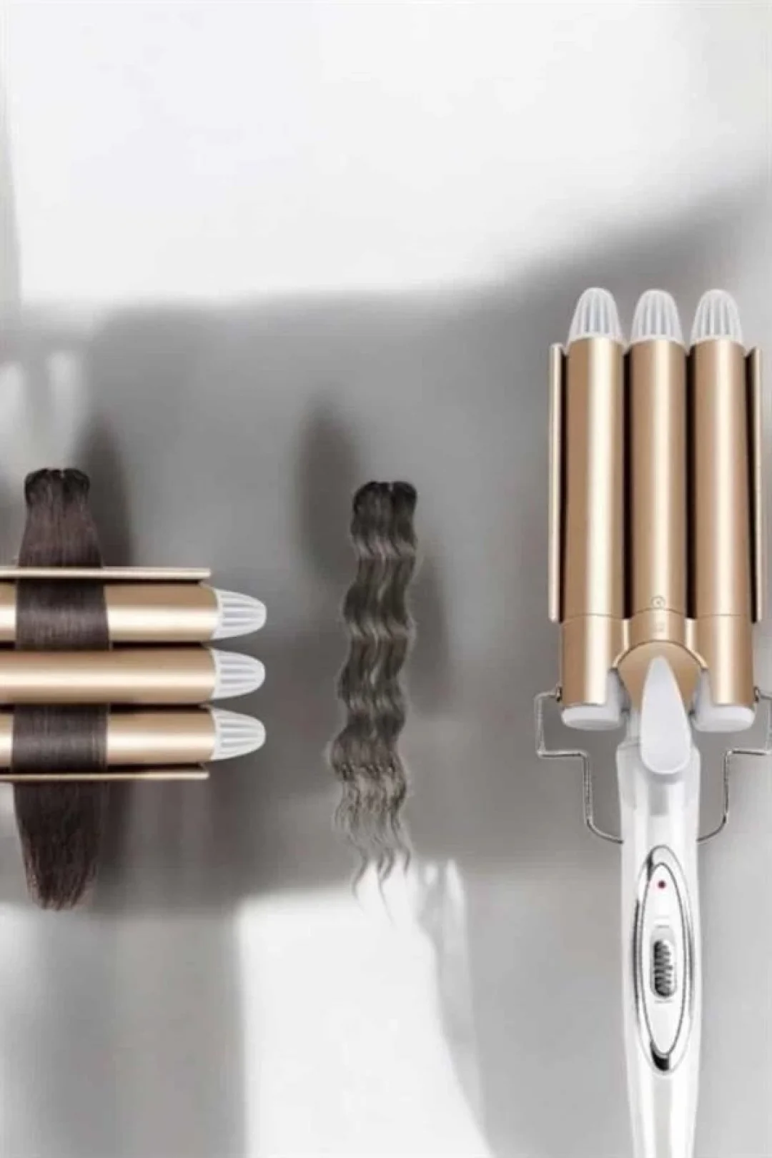 Üçlü saç maşası, profesyonel görünümlü, doğal ve dayanıklı bukleler oluşturmak için mükemmel bir araçtır. Turmalin seramik teknolojisini kullanarak saçınıza zarar vermeden büyük miktarlarda negatif iyon üretir ve bu sayede saçı nemlendirir, elektriklenmeyi önler. Böylece saçınız daha sağlıklı ve parlak görünürken, şekillendirdiğiniz bukleler de kalıcı hale gelir. 25 mm çapında 3 namlulu tasarımıyla, orta uzunluktaki ve uzun saçlarda mükemmel sonuçlar elde edebilirsiniz. PTC ısıtma elemanı sayesinde saç maşası yalnızca 30 saniye içinde 170°C'ye ulaşır, sıcaklık hızlıca ve eşit şekilde yayılır, böylece saçı nazikçe şekillendirirsiniz. 170°C ve 220°C arasında ayarlanabilir sıcaklık seçenekleri, farklı saç tiplerine uygun kullanım imkanı sunar. Ergonomik tasarıma sahip kaymaz tutamak ve haşlanma önleyici uçlar, kullanım esnasında güvenliği artırırken, istenmeyen yanma risklerini ortadan kaldırır. Ayrıca, ısı yalıtımlı ön braket, cihazı güvenle bırakabilmenizi sağlar. Üçlü saç maşası, kolay kullanım ve üstün performansı ile her zaman mükemmel bukleler oluşturmanızı sağlar.