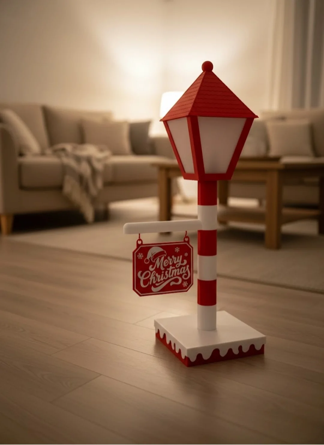Yılbaşı ve Noel dekorasyonuna eğlenceli bir dokunuş eklemek isteyenler için tasarlanan Merry Christmas Tabelalı Lamba, sade ama dikkat çekici tasarımıyla öne çıkar. Kırmızı-beyaz renk uyumu ve klasik sokak lambası formu, sıcak ve davetkâr bir atmosfer yaratır.17×60 cm ölçüsüyle geniş alanlarda rahatlıkla kullanılabilir. Aparat ile yükseltilebilir olması sayesinde farklı dekorasyon düzenlerine uyum sağlar. Loş ve yumuşak ışığı, özellikle akşam saatlerinde cozy bir yılbaşı ambiyansı oluşturur.Ev dekorasyonu, ofis süslemesi, mağaza vitrini veya yılbaşı fotoğraf köşeleri için ideal bir dekoratif aydınlatma ürünüdür.
