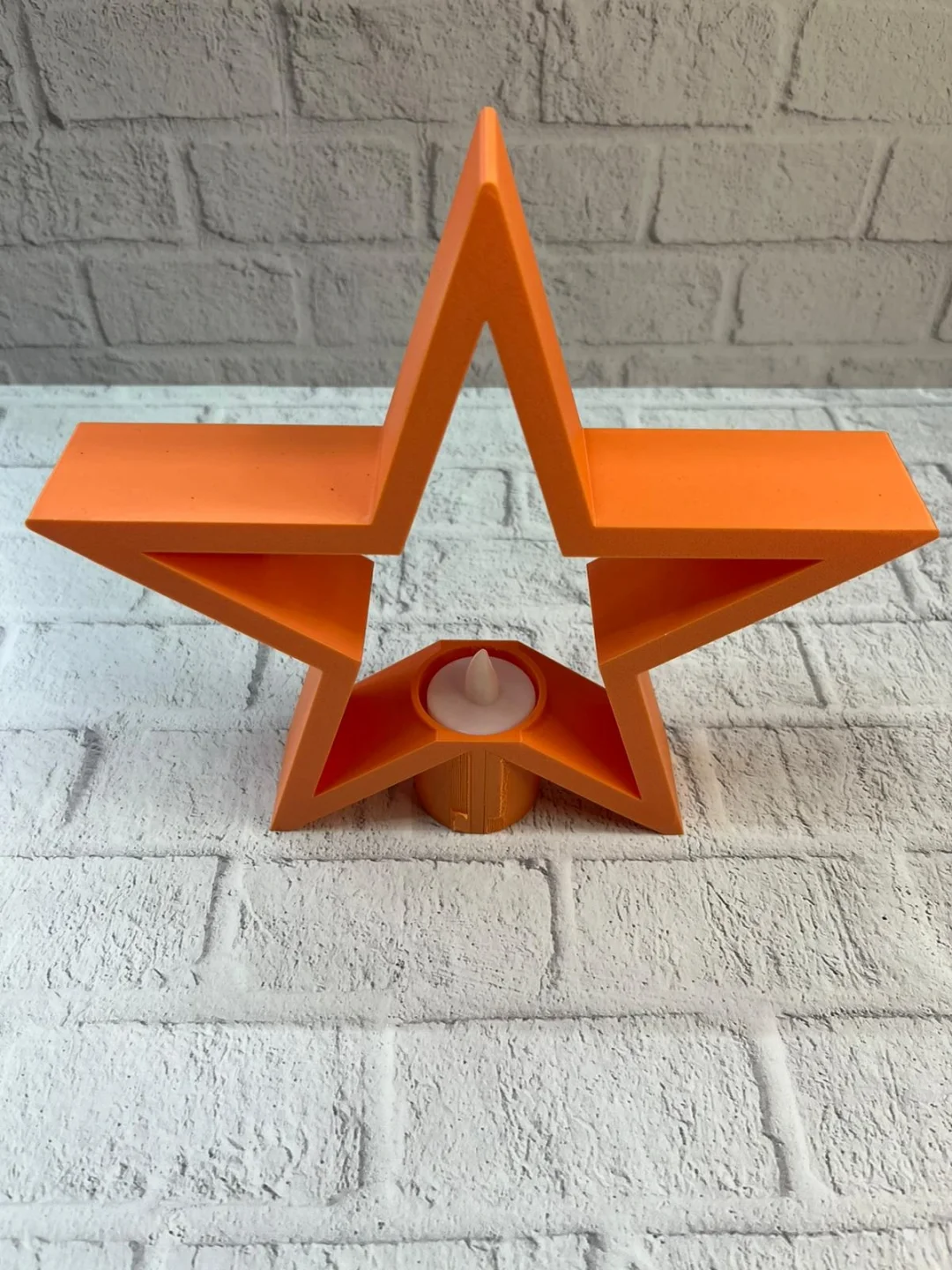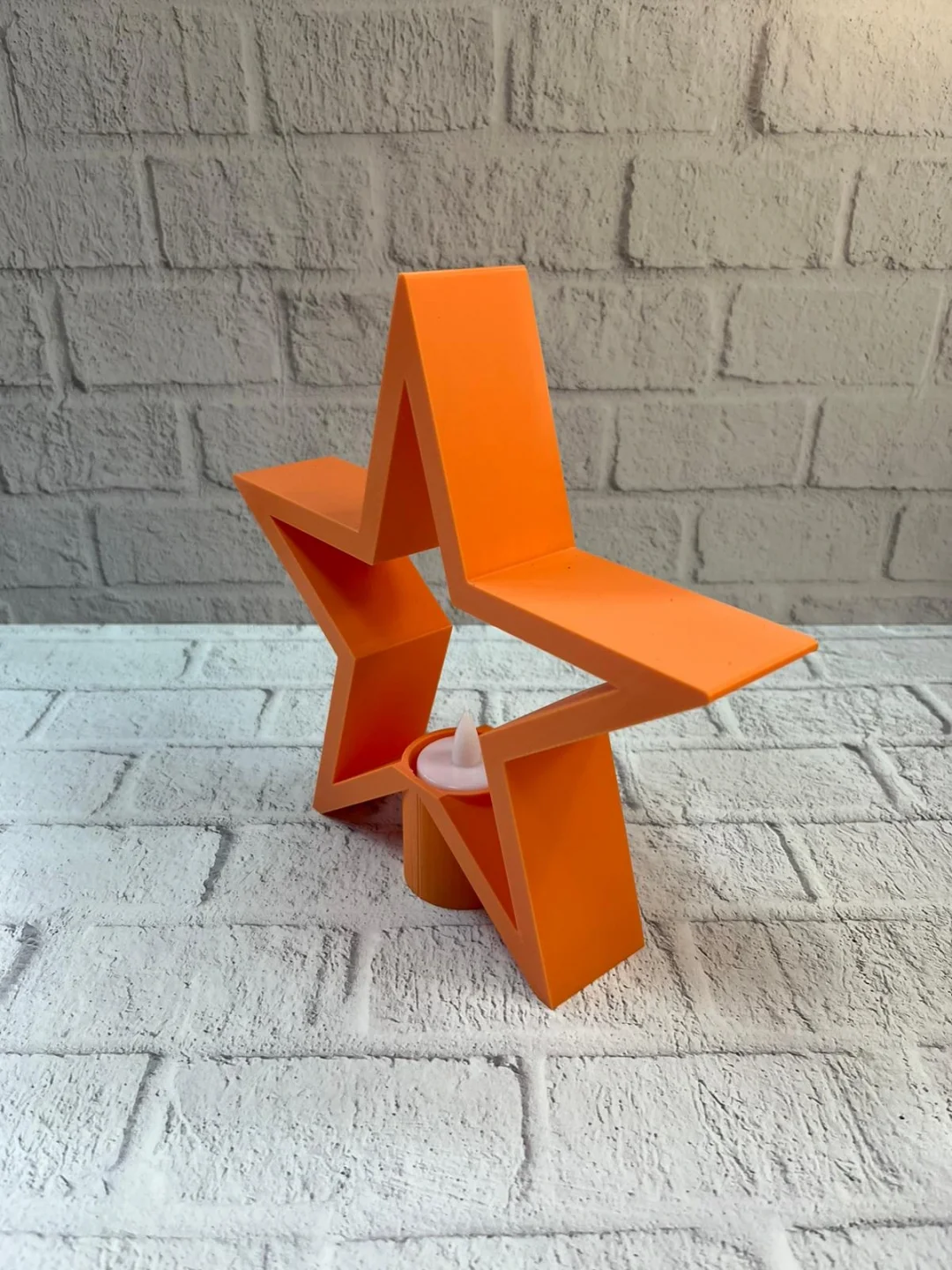 Dekoratif turuncu yıldız mumluk, loş aydınlatma sevenler için estetik ve işlevsel bir ev aksesuarıdır. Raf üstü, masa veya sehpa üzerinde kullanıldığında dekorasyona derinlik ve karakter kazandırır. Mum ışığının yumuşak yansımasıyla salonlarda cozy bir ambiyans oluşturur ve mekâna sıcak bir dokunuş ekler.
