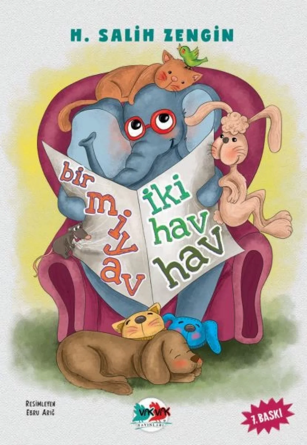 Pijama giymiş bir eşek ya da altmış ikiden bir tavşan göreniniz var mı? Peki ya karanfilin içinde gülümseyen bir filden, pırasalı bir yasadan ya da evinden bacaklı kaplumbağalardan haberiniz var mı? Sinek Meclisi ya da Tavşanlar ve Havuçlar Federasyonu’ndan haberiniz var mı? Öyleyse bu kitap tam size göre! Yenilenen çizim, baskı ve mizanpajıyla yayınlanan Bir Miyav İki Hav Hav isimli mizah kitabı çocukları hayvanların renkli ve eğlenceli dünyasına davet ediyor. Her yaştan okurun keyifle okuyacağı Bir Miyav İki Hav Hav farklı kurgusu ve dil yapısıyla çocukları kahkahalara boğuyor. Çocuk edebiyatının usta kalemlerinden H. Salih Zengin’in yazdığı ve Ebru Arığ’ın farklı çizimleriyle renklendirdiği kitap, çocukların çok sevdiği hayvanları eğlenceli bir dille anlatıyor. Hayvanları mizahi bir üslupla anlatan Bir Miyav İki Hav Hav’ı çocuklar gülerek okurken aynı zamanda onlarca deyim ve atasözlerini de öğrenmiş olacaklar.