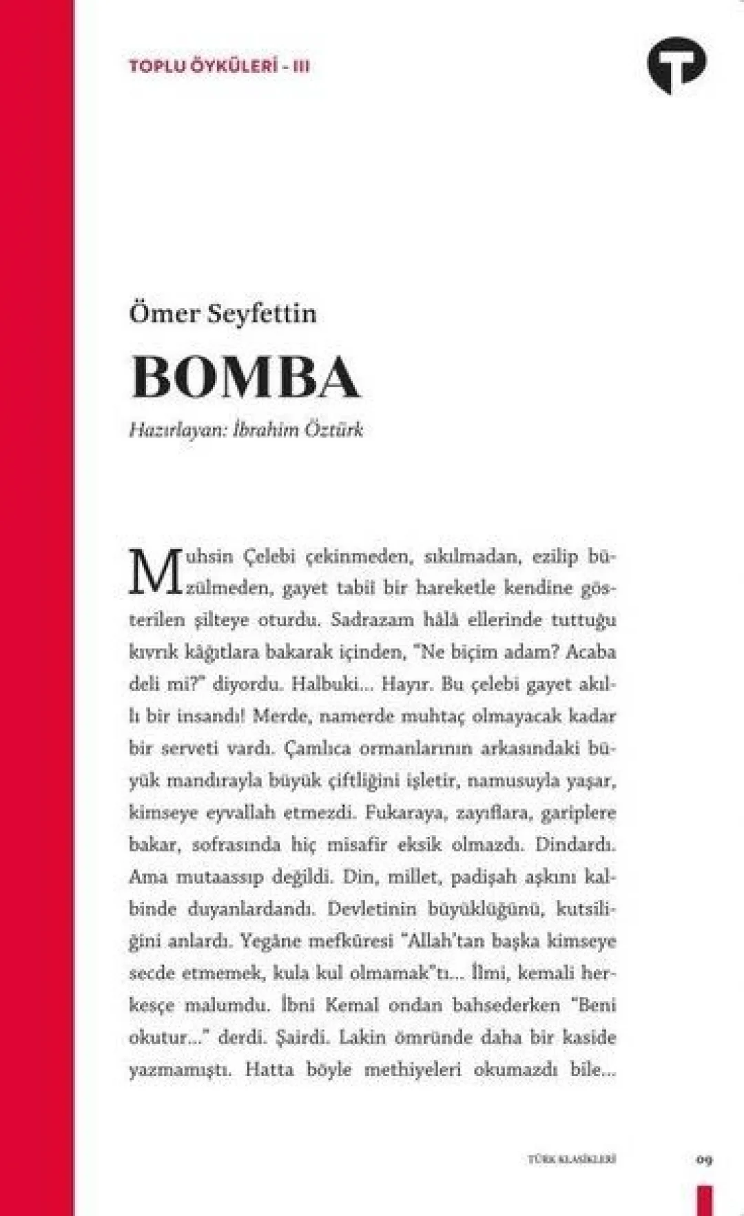 Edebiyat, Ömer Seyfettin için ateşli fikirlerini savunabileceği, keskin zekasıyla oyunlar oynayabileceği bir mecradır. Her biri hem bir eleştiri hem bir öneri içeren “Bomba” ve “Pembe İncili Kaftan” gibi öncü metinlerin bir araya geldiği bu kitap, yazarın çocukluğundan askerlik yıllarına, savaşın yarattığı kasvetten nefes aldıran ideallere dair izler taşır.