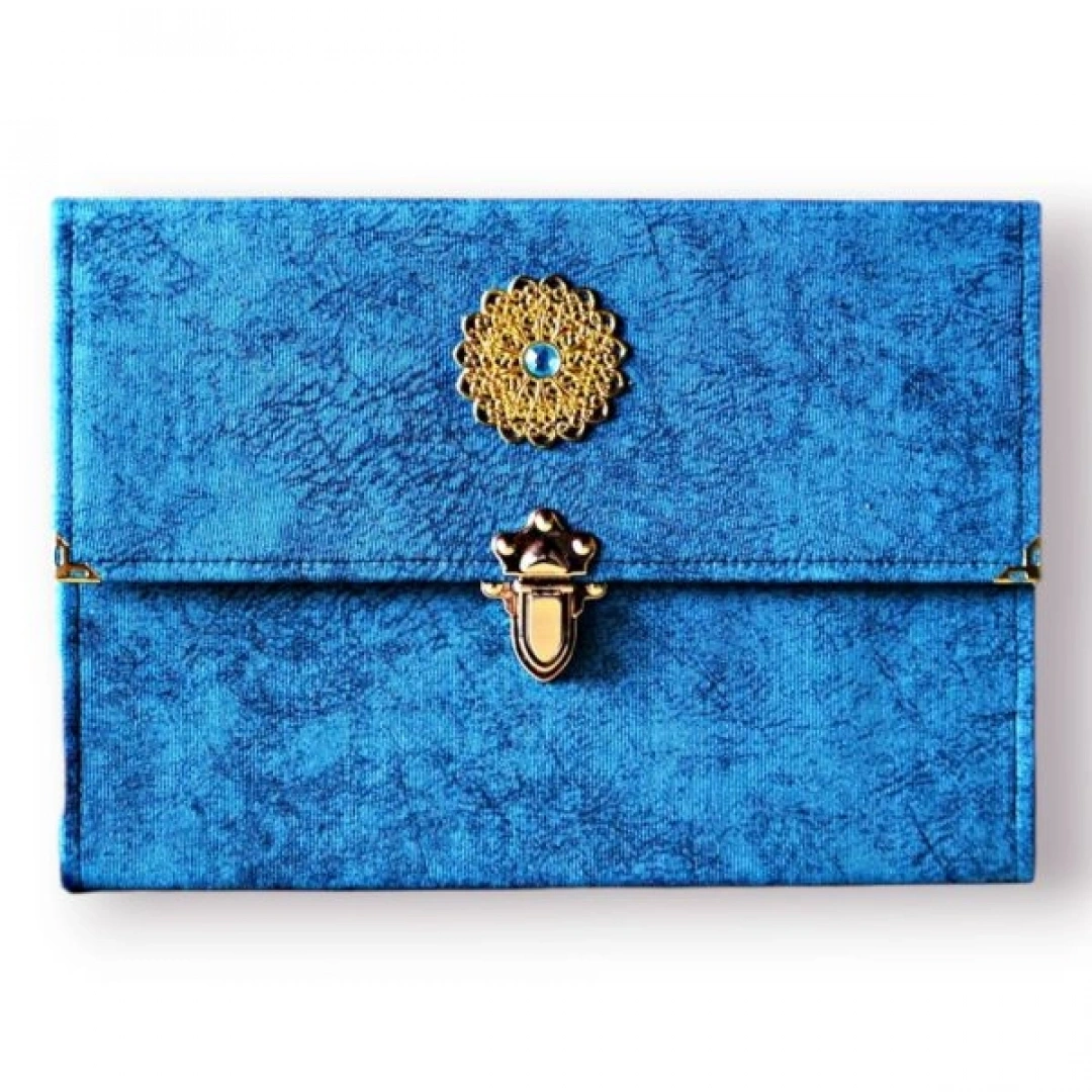 Orta Boy Kadife Kapaklı Kuranı Kerim Saks Mavi Renk