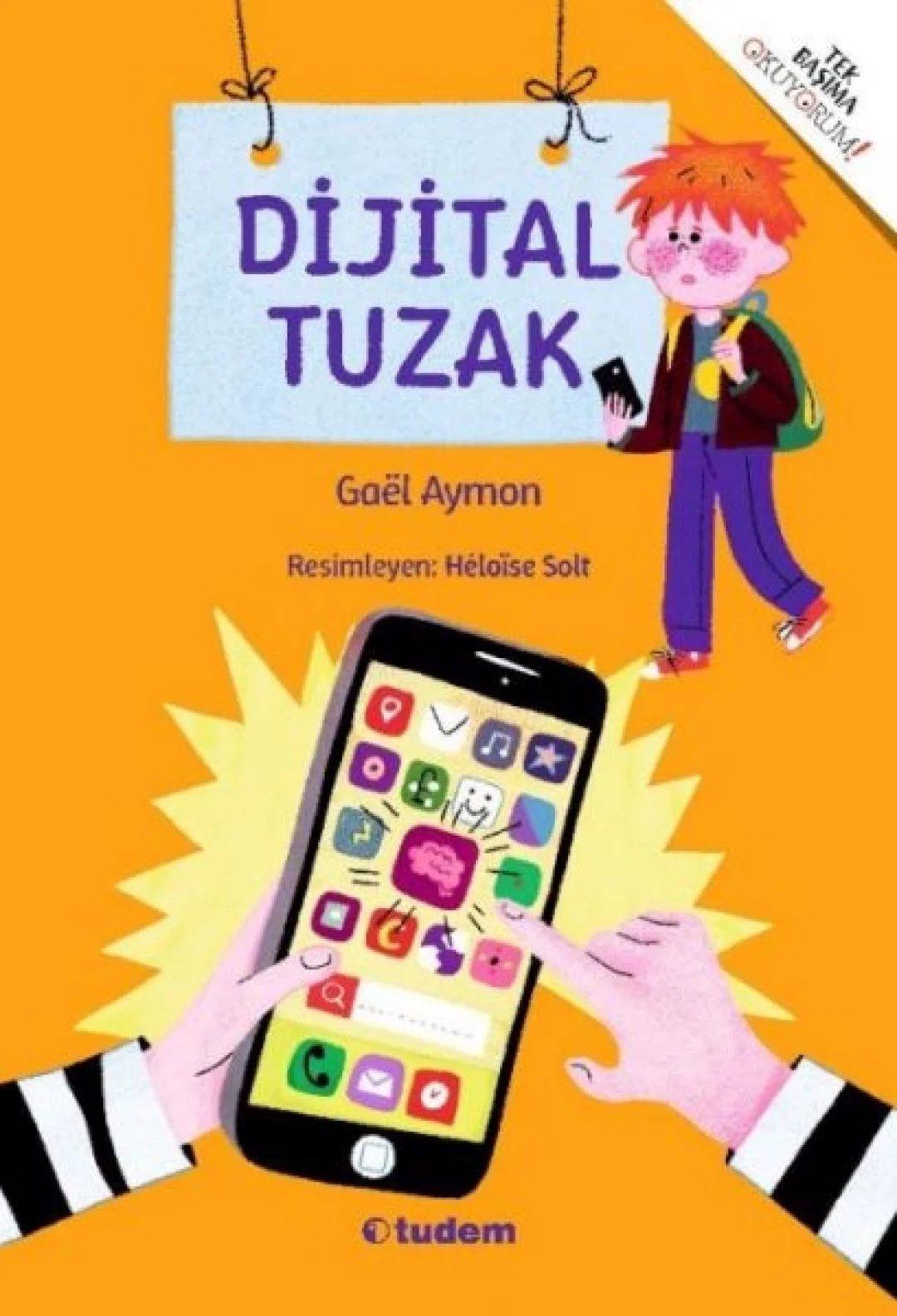 Yapay zekânın cazibesine kapılmadan özgünlüğü koruyabilmek... Gaël Aymon’un “Tek Başıma Okuyorum!” koleksiyonu için kaleme aldığı Dijital Tuzak, bilişim çağı çocuklarını teknolojik araçların yararları ve zararları hakkında bilinçlendiren, heyecan verici bir farkındalık öyküsü. Hayatın hemen her alanında karşımıza çıkan yapay zekânın karanlık yüzüne dikkat çeken yazar, temel hak ve özgürlüklerimiz özelinde kişisel verilerin korunmasının önemini yineliyor. Kontrolsüz teknoloji kullanımının günlük yaşantımızı nasıl sinsice ele geçirebileceğini gösteren kitap, ekran bağımlılığını kırmanın yolları üstüne düşündürüyor. Bitmek bilmeyen ev ödevlerinden ve yorucu sınava hazırlık süreçlerinden sıkıldıysanız, size harika bir tavsiyemiz var: “İkinci Beynim” uygulaması! Beyninizi dinlendirmek için tasarlanan bu ücretsiz uygulama sayesinde sizi yorabilecek her şeyden uzaklaşacak ve sadece keyif aldığınız aktivitelere odaklanabileceksiniz. Küçük Mete de, daha nice çocuk gibi “İkinci Beynim”in cazibesine kayıtsız kalamadı. Zaten kim ödevini saniyeler içinde, üstelik tam da öğretmenlerin istediği şekilde hazırlayan bir dijital asistana hayır diyebilir ki? Oysa tüm bu vaatlerin ardında tehlikeli sırlar yatıyordu... Yapay zekâ çağında özgün kalmanın ve yaratıcı düşünmenin inceliklerine dair zihin açıcı bir hikâye anlatan Dijital Tuzak, çocukları kendi kararlarını alma hususunda yüreklendiriyor