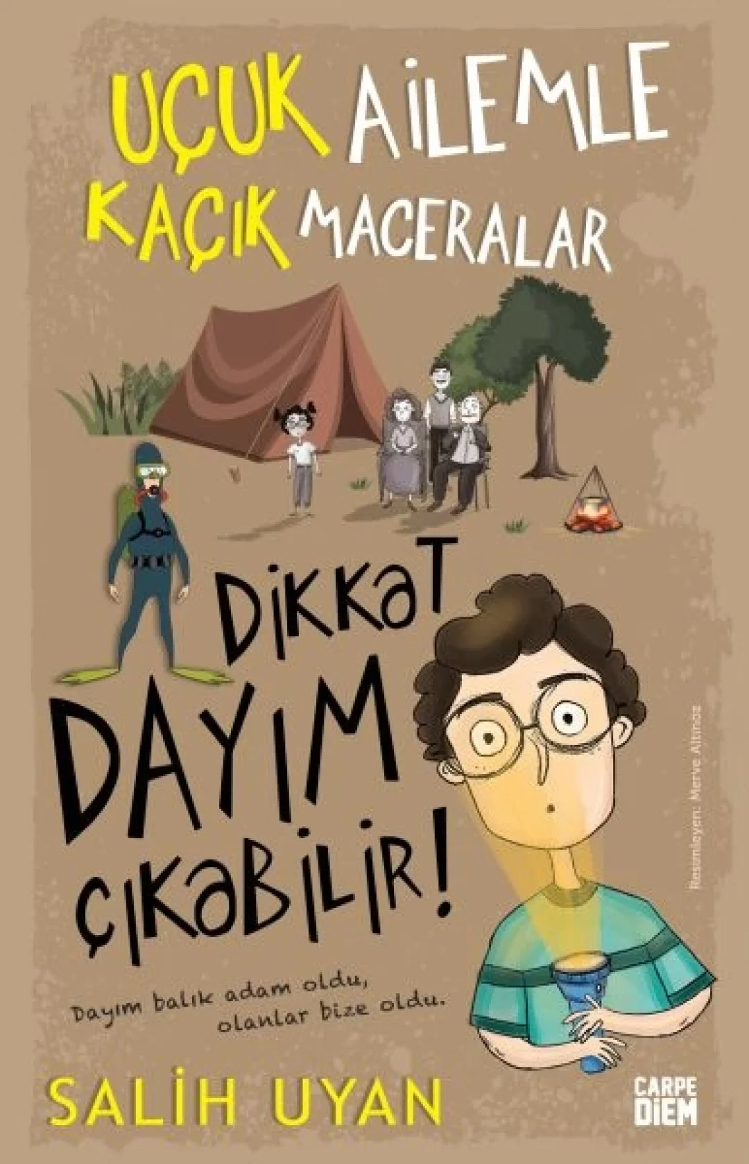 Bu sefer Uçuk Ailesi olarak kamp tatilindeyiz. Doğayla sarmaş dolaş, huzur içinde bir tatil yapma hayaliyle yola çıktık. Ama doğa yerine babamla ve dedemle sarmaş dolaş vazitteyim. Çünkü iki kişilik çadırda altı kişi yatıyoruz. Daha doğrusu yatamıyoruz. Çünkü şişme yatak var. Birisi hareket ettiği anda çadırda Meksika dalgası oluşuyor. Dayımın belden aşağısı çadırın dışında kaldı. Dedem, üşümeyeyim diye altına içlik giymiş, hatır hatır kaşınıyor. Neşe, ayı gelecek diye korkuyor. Annem “At nalı gibi kıpırdayıp durmayın!” diye söyleniyor. Babamsa bu ortamda mehter marşı söylüyor. Keşke kamp maceramız sadece bu komik ve neşeli anlarla kalsaydı. Ama maalesef kalmadı. Çünkü dayım zıpkını alıp balık vurmak için gecenin bir vakti denize daldı. Ve sudan çıktığında biz de acayip bir maceranın içine daldık. Bir daha da çıkamadık. Emin olun! Siz de bu kitaba dalınca çıkamayacaksınız.