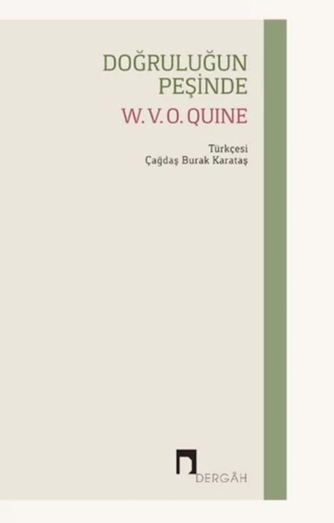 20. yüzyılın en etkili filozoflarından biri olan W. V. O. Quine (1908-2000), Doğruluğun Peşinde adlı bu kitabında düşünce yaşamı boyunca yürüttüğü tartışmaları tekrar ele almaktadır. Okur, dilin dünyayla ilişkisi, bilginin temelleri, bilim ve gerçeklik ilişkisi, doğruluk kavramı gibi tartışmalara odaklanan Quine’ın bu yapıtında onun bilindik savları olan “gönderimin belirlenemezliği”, “çevirinin belirsizliği” gibi savlarını da takip edebilecektir. 1992 yılında ikinci basım olarak yayımlanan bu kitap, bir geç dönem yapıtı olmak bakımından bir anlamda Quine’ın “son görüşleri”nin bir derlemesidir. Kitabın bir diğer önemli yanı da söz konusu derlemeyi kısa ve yalın şekilde ortaya koymasıdır. Çevirinin bu anlamda hem Quine’ın öne çıkan düşünceleriyle tanışmaya yardımcı olması hem de Türkçede üretilecek yeni düşüncelere ufuk açmak açısından bir hareket noktası olabilmesi umulmaktadır.