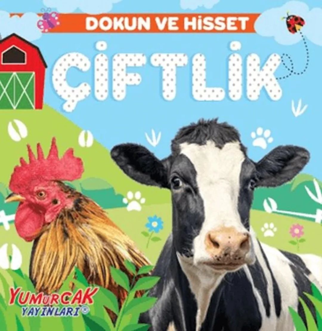 Dokunmaya cesaret edecek misin? Dokun ve Hisset – Çiftlik Hayvanları, minik okurları inek, horoz ve çiftliğin sevimli hayvanlarıyla buluşturan eğlenceli bir karton kitaptır. Dokunup hissedilebilen özel dokulu sayfaları sayesinde çocuklar farklı yüzeyleri keşfederken duyusal gelişimlerini destekler. Kalın ve dayanıklı karton sayfaları, küçük eller için güvenli bir kullanım sunar. Canlı renkler ve sıcak çizimler, çocukların ilgisini çekerken öğrenmeyi keyifli hale getirir. Dokun ve Hisset – Çiftlik Hayvanları, çocukların hayvanları tanımasını, merak duygusunu geliştirmesini ve kitaplarla erken yaşta bağ kurmasını sağlayan harika bir ilk kitap deneyimidir.