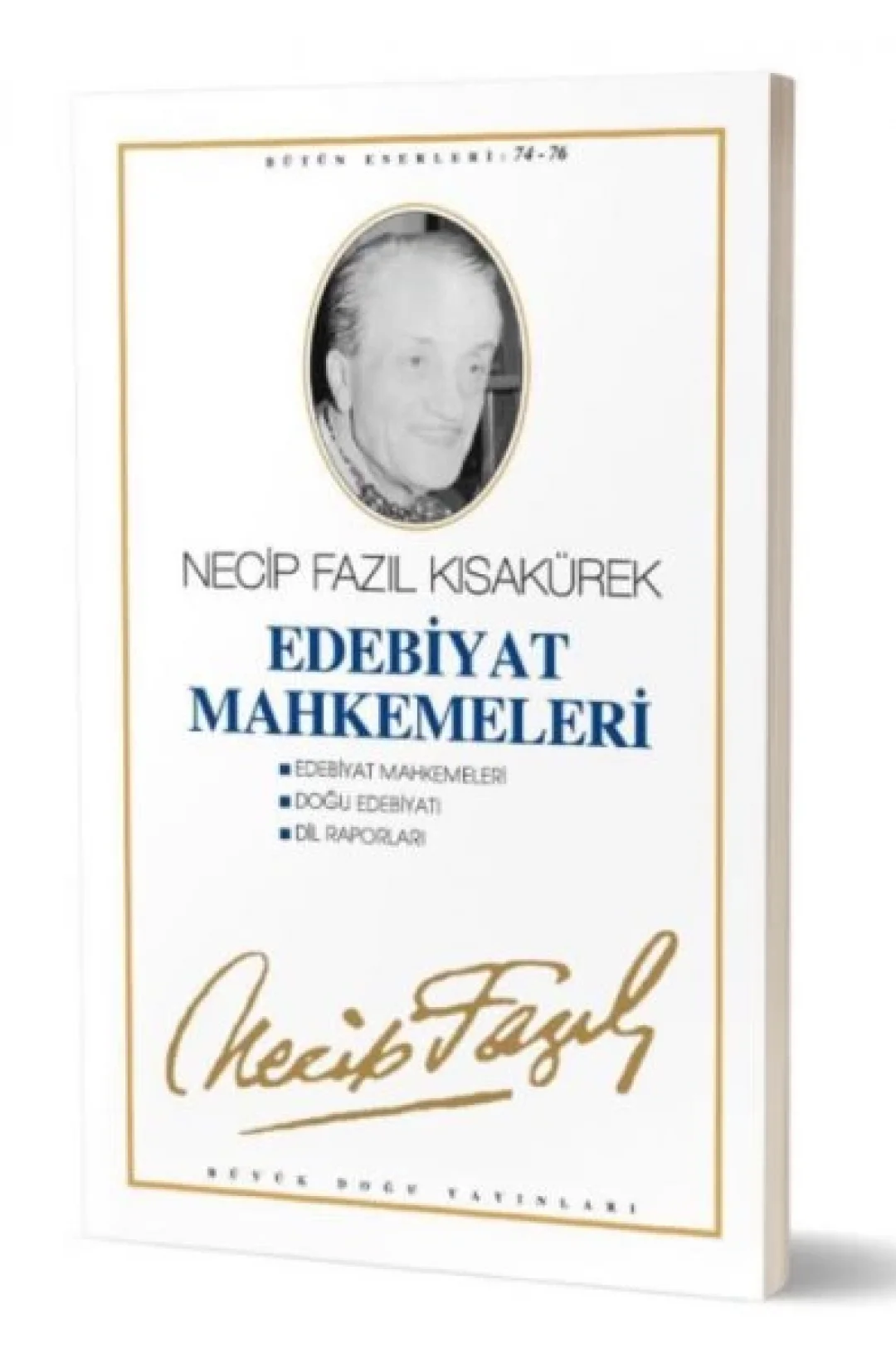 Edebiyat Mahkemeleri: Bu baslik altinda, 1945 Büyük Dogu dergilerinde nesredilmis yazilarda, edebiyat dünyamizin ünlü isimlerinden Tevfik Fikret, Yahya Kemal, Mehmet Akif ve Nurullah Ataç, mizah üslûbuyla bir mahkeme mizanseni içinde kritik ediliyor. Ayrica farkli zaman ve mekanlarda Necip Fazil nezaretinde yapilan sohbet toplantilarinda “Tevfik Fikret“ ve ayri bir bahis olarak “siir“ ele aliniyor. Dogu Edebiyati: Dogu edebiyatina kisa ve genel bir giristen sonra, Arap Edebiyati bölümünde “Muallakat-i Seb’a“ sairleri; Fars edebiyati bölümünde ise Baba Tahirden baslayarak ilk sehnameciler ve Firdevsi, hayati, edebi kiymeti ve eserlerinden örneklerle anlatiliyor, Misir Edebiyati bölümünde Papiruslar üzerine yazilmis Annana isimli bir kâhine ait en eski bir hikayenin tercümesi bulunuyor. Eserin son bölümünde ise Dogunun Büyükleri basligi altinda, Nizami, El-Maarri, Ömer Hayyam, Ibn-i Fariz ve Sadi ele alinmis ve eserlerinden oldukça hacimli tercümeler yapilmistir. Dil Raporlari: “Zavalli Türkçe“ ve “Dil Laboratuarindan“ ana basliklari altinda bir taraftan lisana dair ölçüler verilirken, diger taraftan, “teshis“le birlikte, Türk dilinin içine sürüklendigi kaostan çikmasi için çarelerin neler olabilecegi üstünde duruluyor.