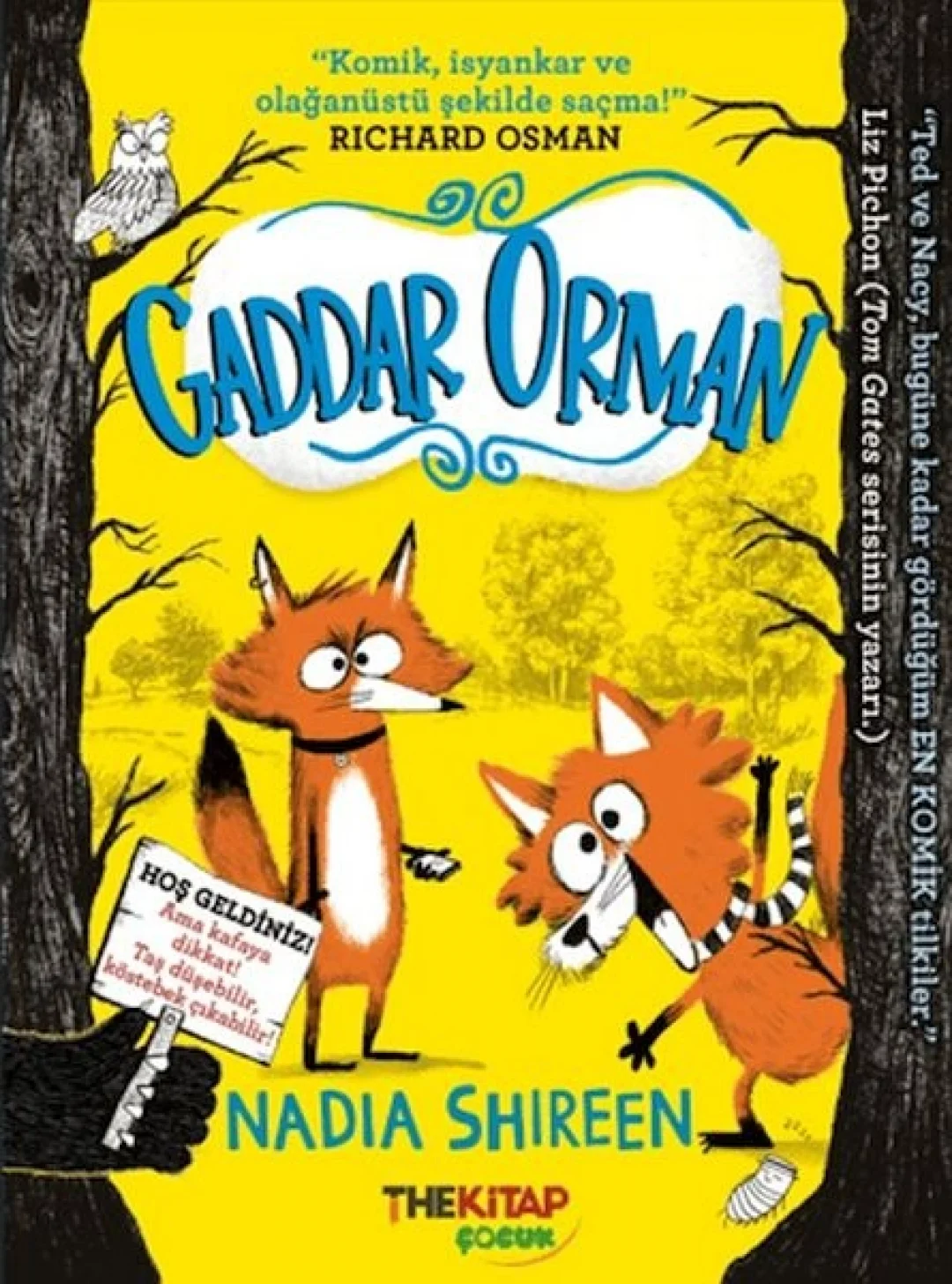 Bugüne kadar okuduğunuz bütün komik kitapları unutun. Artık en komik, en eğlenceli, en macera dolu ormandasınız. Gaddar Orman’a hoş geldiniz. Burada; Tilkiler Firarda Korkunç kedi intikam için arkalarında! Ve sincaplar havada! (Evet, havada!) Tilki kardeşler Ted ve Nancy, Gaddar Orman’a kaçıp paçayı sıyırabileceklerini düşünürler. Oysa hırsız kartallarla, gergin ördeklerle ve gürültücü tavşanlarla başa çıkmaları gerekecek. Kim böyle bir maceraya dalmak istemez ki! Gülmekten başınız çatlayacak! (Tabii, hâlâ yerindeyse.) Ted ve Nacy, bugüne kadar gördüm EN KOMİK tilkiler. (Liz Pichon, Tom Gates serisinin yazarı.)