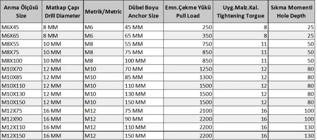 Güvenli: Sac gömlekli dübeller, yüksek dayanıklılıkları nedeniyle güvenlidir ve iyi bir sabitleme sağlarlar.