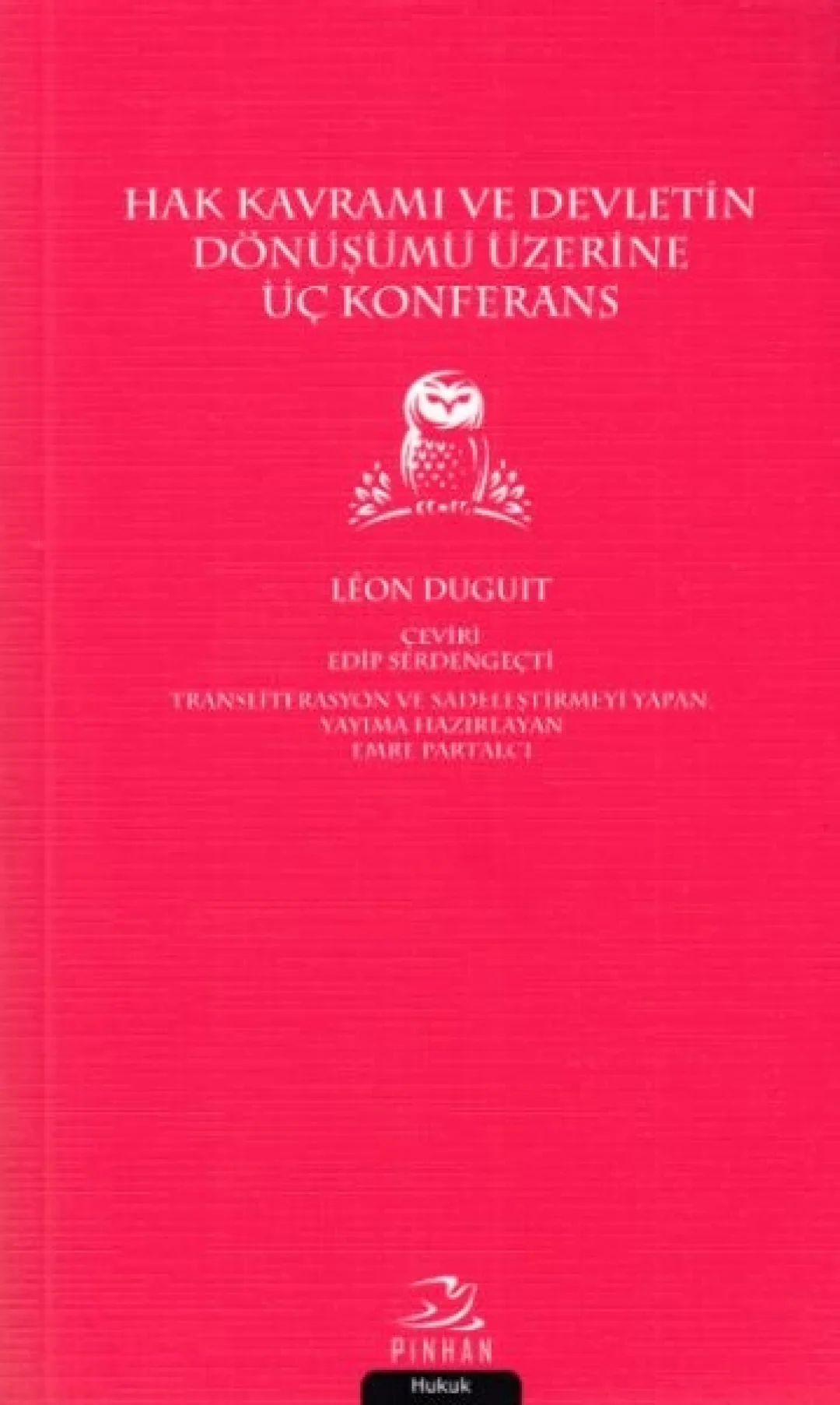 Duguit'nin Paris'te L'École des Hautes Études Soles'de yani Tedkikât-ı İctimaiye Mektebinde vermiş olduğu üç konferansı içeren bu çeviri, Darülfünun Hukuk Fakültesi Mecmuası'nın Eylül 1924'te yayımlanan 16. sayısından itibaren sıralı toplam üç sayısında tefrika edilmiştir. Edip Serdengeçti'nin çevirdiği metnin orijinal adı Le Droit Sol, Le Droit Individuel et la Transformation de l'État'dır. İlk baskısı 1908'de yapılmış, 1911'de ikinci baskıya girmiştir. Bu ikinci baskıyı esas alan Serdengeçti çevirisi, ilk kez Latin harfleri ile yayınlanıyor.