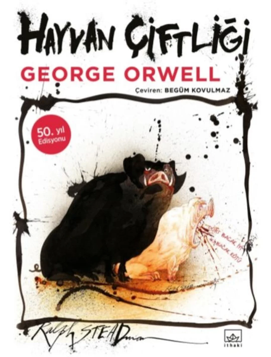 1945 yılında yayımlanmasından itibaren Hayvan Çiftliği tarihte en çok tartışma yaratan kitaplardan biri oldu. Dünya çapında onlarca dile çevrilip milyonlarca okurla buluştu. Elinizdeki edisyon, kitabın ellinci yılını kutlamak adına özel olarak tasarlandı. Çağımızın en önemli politik çizerlerinden Ralph Steadman’ın 100 adet renkli çizimi ve eskizleriyle Hayvan Çiftliği’nin karanlık dünyası can buldu.