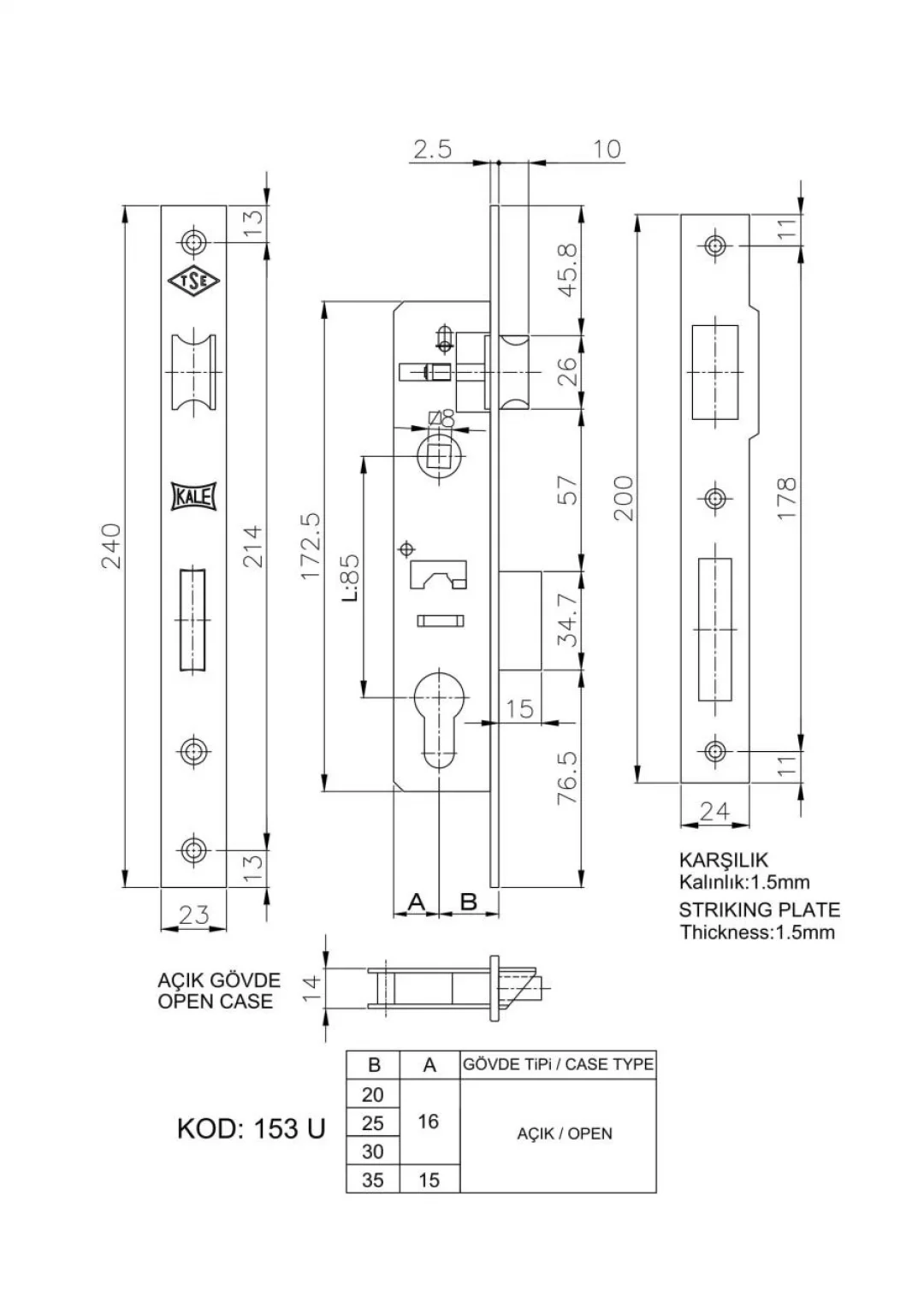 TEKNİK BİLGİLER Gövde : Çelik Galvaniz kaplamalı. Ayna ve Karşılık : Çelik Sürgü : Zamak döküm. Pirinç kaplamalı. Tek turlu. Mandal : MS 58 Pirinç Sertifikalar : TS EN 12209