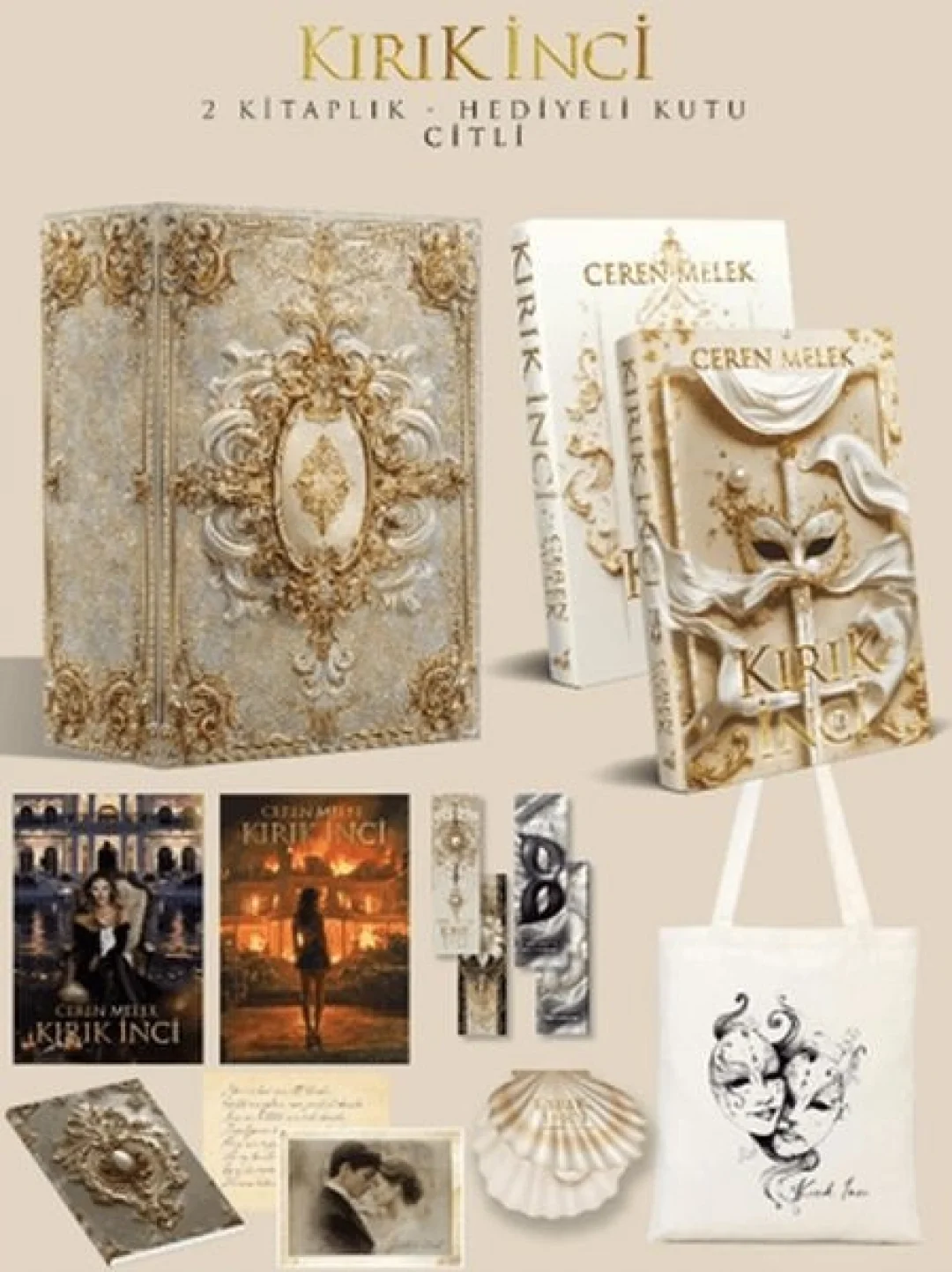 SET İÇERİĞİ: Kırık İnci (CİLTLİ) Kırık İnci 2 (CİLTLİ) Özel Baskısı Bez Çanta Özel Kesim Ayraç Defter Karakter Kartı Ayraç Poster