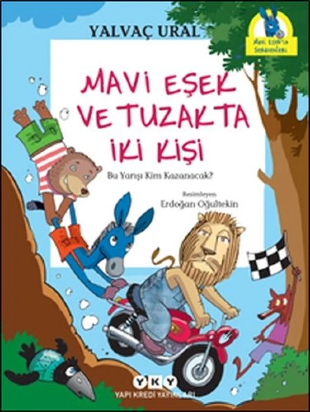 Bu orman, başka orman! Mavi Eşek ve Kral Aslan, bir kitabın sayfalarının arasına sıkışıp kalmışlardı. Bu yüzden Yazar’la ve Çizer’le tartışıp duruyorlar, kendi öykülerinin yazarı olmak istiyorlardı. Bu arada Geveze Karga da yazarlığa soyunmuştu ve elbette bir planı vardı: Yazar’a ve Çizer’e tuzak kuracaklar, onlara patronun kim olduğunu göstereceklerdi! Çocuk yazınımızın üretken kalemi Yalvaç Ural, Mavi Eşek’in Serüvenlerinin ikinci kitabında da Ormangiller’in renkli dünyasında dolaşıyor: Mavi Eşek ve Tuzakta İki Kişi / Bu Yarışı Kim Kazanacak?, Yazar ve Çizer’e rağmen, kendi öykülerini yazıp oynamaya çalışan ama her seferinde bu muzip ikilinin planlarının bir adım gerisinde kalan Ormangiller’in sürükleyici macerasına çağırıyor kitap kurtlarını.