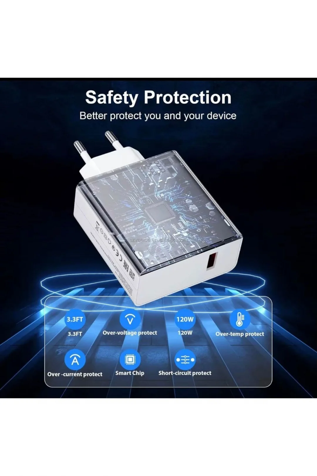 Mey İthalat® ⚡ 120W Hızlı Şarj Adaptörü + Type-C Kablosu | Süper Hızlı Şarj Cihazı 1 metre