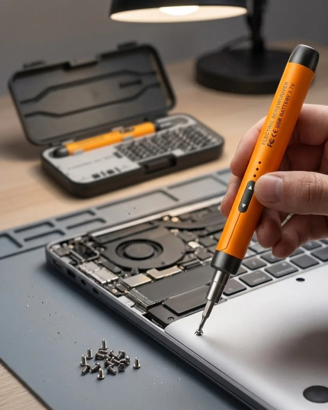Kablosuz şarjlı elektrikli tornavida seti, profesyonel teknik servis kalitesini ev ortamına taşıyan güçlü ve kompakt bir tamir çözümüdür. Hassas elektronik cihazların güvenli şekilde sökülmesi ve montajı için özel olarak tasarlanmıştır. 3.7V DC Li pil teknolojisi ve 600mAh batarya kapasitesi sayesinde stabil, kesintisiz ve güçlü performans sunar. Type-C şarj girişi ile hızlı ve pratik şekilde şarj edilebilir.1100 devir/dak dönüş hızı, mikro vidalarda yüksek verim sağlar. 3.0–3.5 kgf.cm elektrik tork gücü, telefon, dizüstü bilgisayar ve oyun konsolu gibi hassas cihazlarda güvenli kullanım sunar. İleri ve geri dönüş özelliği sayesinde vidalama ve sökme işlemleri tek tuşla kolayca yapılır. Bu özellik zamandan tasarruf sağlar ve iş sürecini hızlandırır.Alüminyum alaşımlı gövde, hem hafif hem dayanıklı bir yapı sunar. Uzun süreli kullanımda el yorgunluğunu azaltır. 38 adet CRV tornavida ucu sayesinde farklı vida tiplerine uyum sağlar. Set içerisinde bulunan mıknatıslanma ve manyetiklik giderme aparatı, vidaların kontrolünü kolaylaştırır ve kaybolma riskini azaltır.Cep telefonları, laptoplar, kameralar, saatler, PS5, Xbox, Switch gibi oyun konsolları ve diğer dijital ürünlerin tamiri için idealdir. Profesyonel performans, ergonomik tasarım ve geniş aksesuar içeriği bir arada sunulmaktadır.