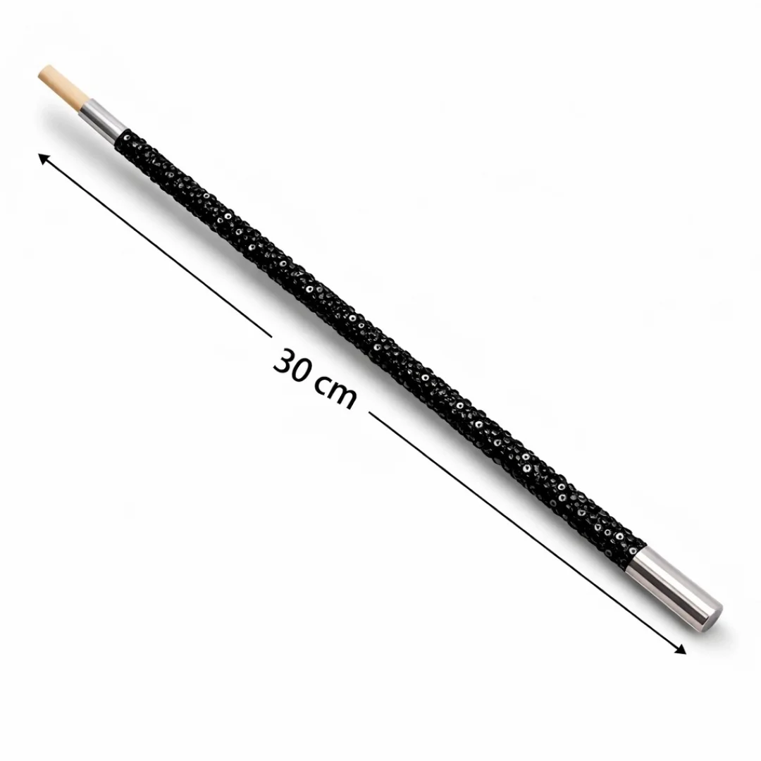 30 cm uzunluğundaki siyah payet kaplama sigara tutacağı, Gatsby ve flapper konseptli partiler için mükemmel bir tamamlayıcı aksesuardır. Uzun ve ince formu sayesinde elde zarif durur, fotoğraflarda şık bir siluet oluşturur.