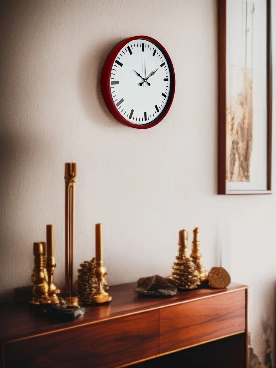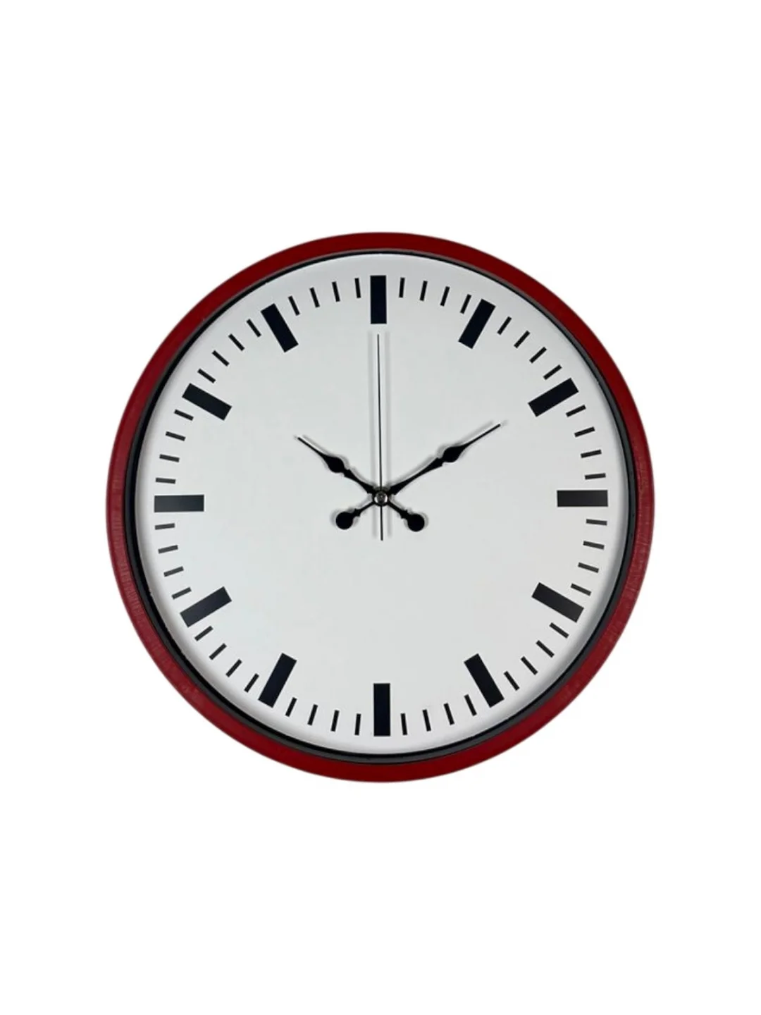 Canlı kırmızı çerçevesi ve sade beyaz kadranı ile tasarlanan bu 36 cm duvar saati, bulunduğu ortama enerjik ve dikkat çekici bir hava katar. Siyah çizgisel indeksleri ve zarif akrep-yelkovan yapısı sayesinde saatin okunabilirliği oldukça yüksektir. Modern ve sade tasarımıyla hem ev hem de ofis dekorasyonlarında güçlü bir tamamlayıcı olarak öne çıkar.