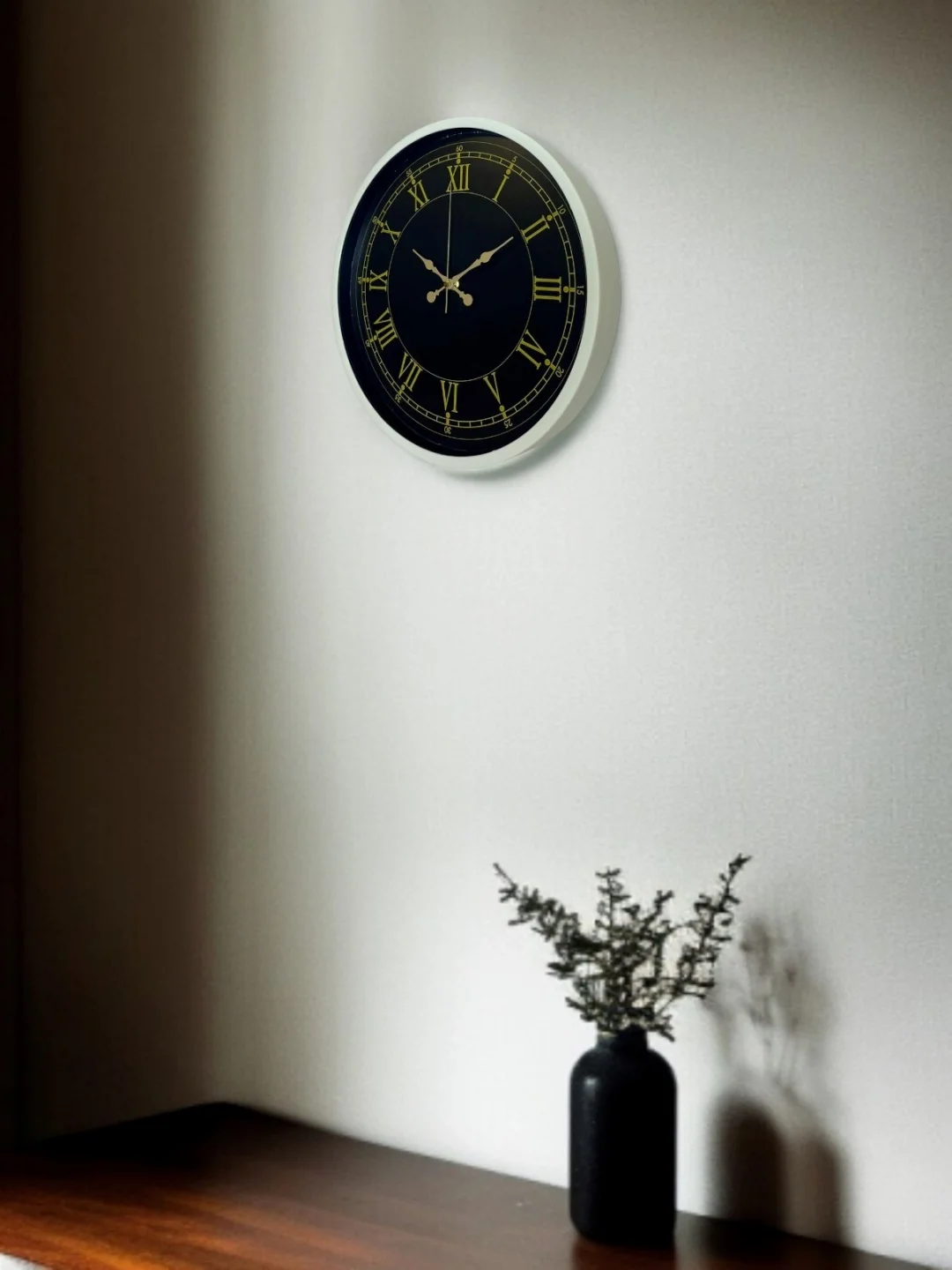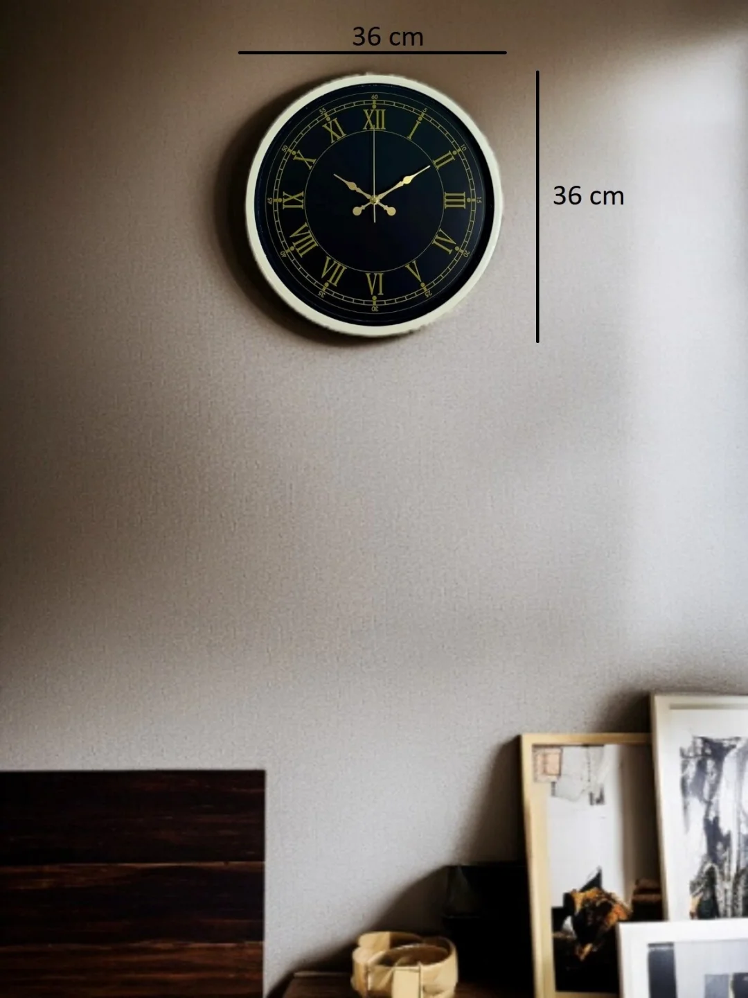 Krem renkli çerçevesi, siyah kadranı ve gold tonlu Roma rakamları ile tasarlanan bu 36 cm duvar saati; klasik dekorasyon sevenler için zamansız ve asil bir görünüm sunar. Detaylı dakika göstergeleri ve dengeli kadran yapısı sayesinde zamanı kolayca okumayı sağlar. Salon, oturma odası ve ofis gibi yaşam alanlarında dekorasyonu tamamlayan güçlü bir aksesuardır.