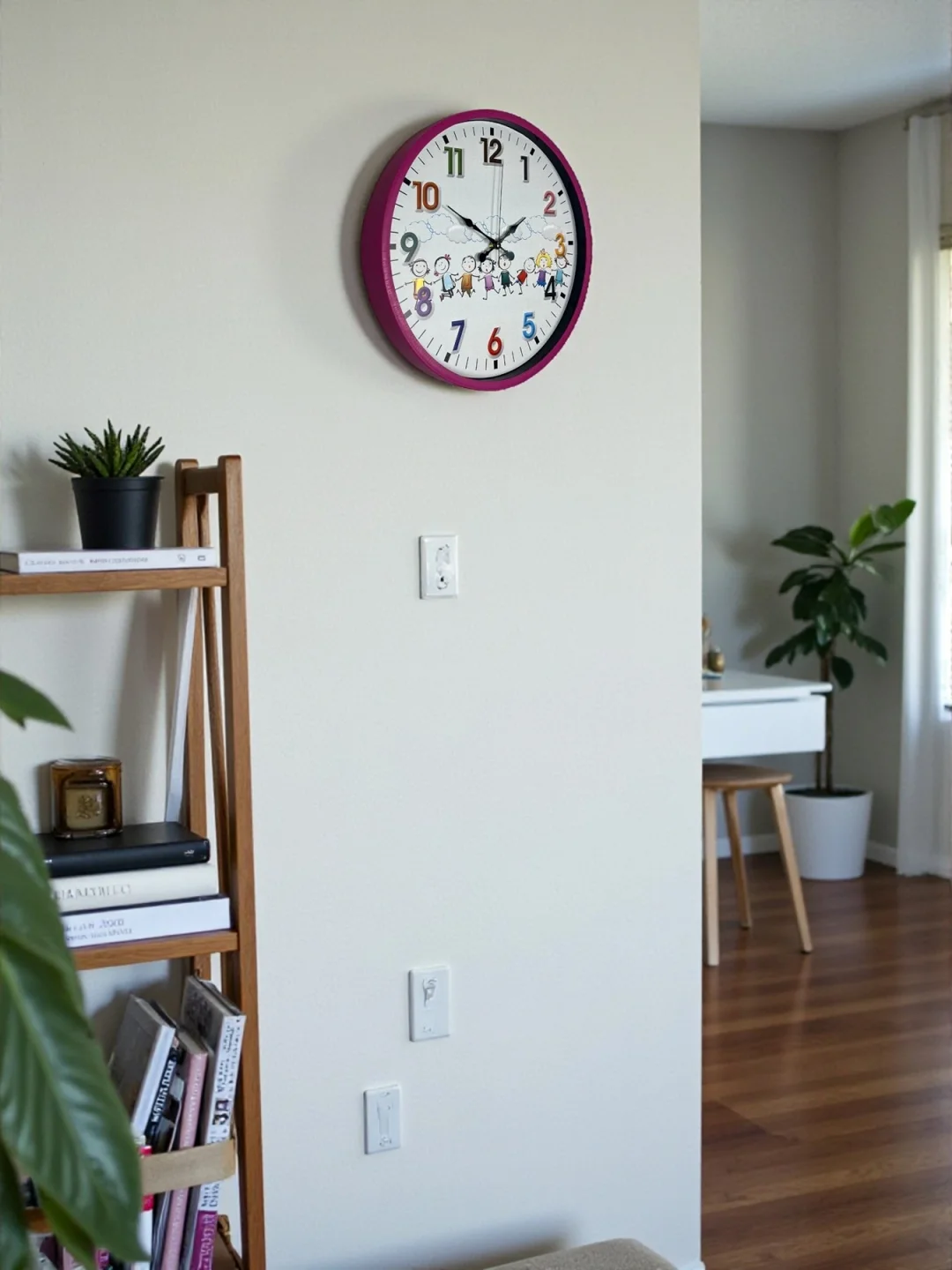 Canlı pembe çerçevesi, renkli rakamları ve sevimli çocuk figürleriyle tasarlanan bu 36 cm çocuk odası duvar saati, çocukların odasına neşe ve sıcak bir atmosfer kazandırır. Eğlenceli tasarımı sayesinde çocukların saat kavramını öğrenmesini desteklerken, odanın dekorasyonuna da enerjik bir dokunuş ekler.