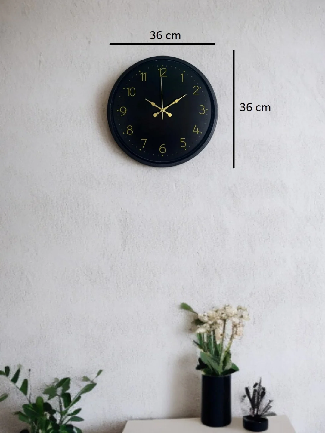 Minimal tasarımı ve asil siyah rengiyle öne çıkan bu 36 cm duvar saati, modern ve klasik dekorasyonlara kusursuz şekilde uyum sağlar. Gold tonlu rakamları ve zarif akrep-yelkovan tasarımı sayesinde saat net bir şekilde okunur ve bulunduğu ortama sofistike bir hava katar.