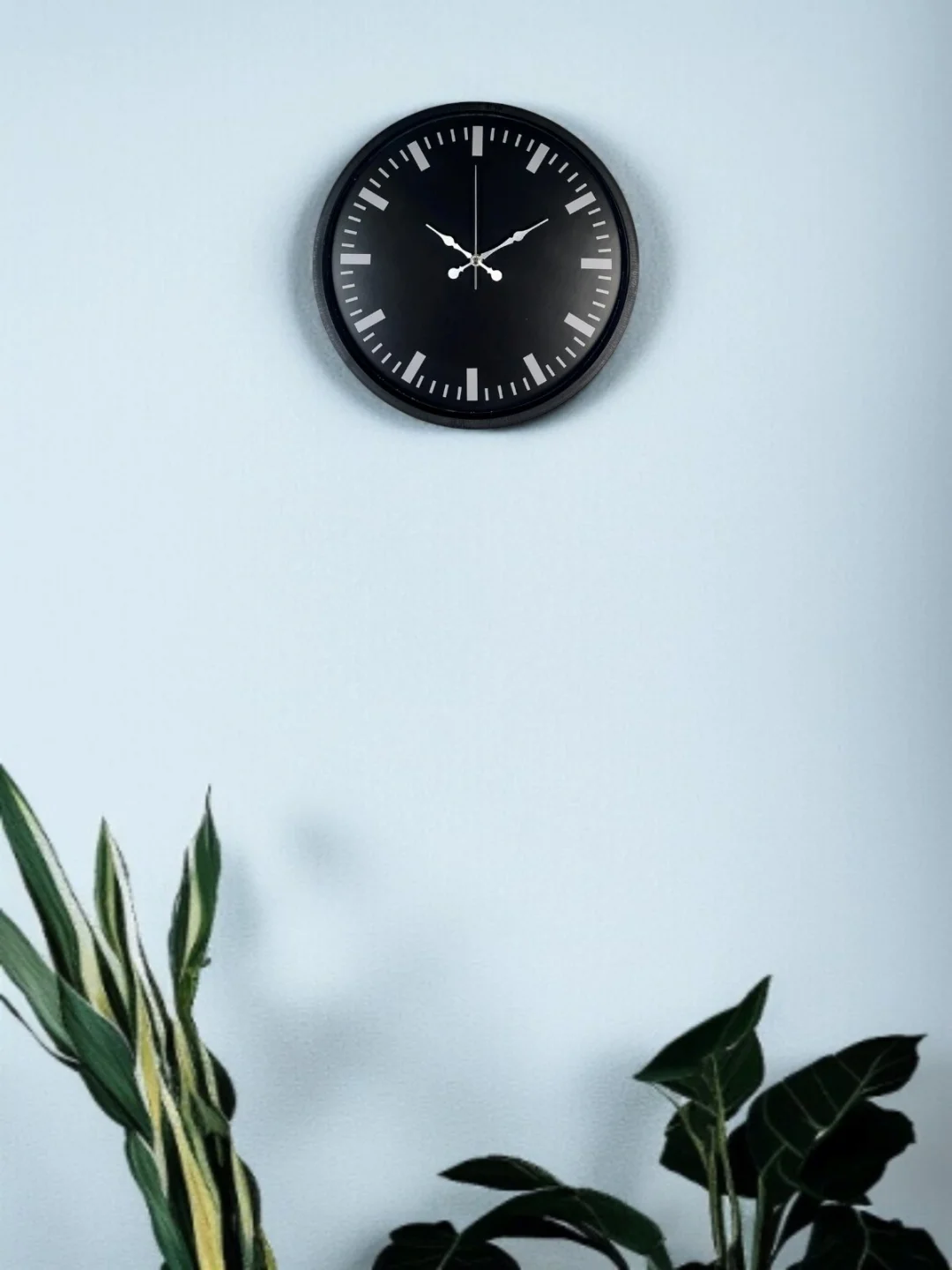 Rakam kullanılmadan tasarlanan çizgi indeksli kadranı ile bu 36 cm siyah duvar saati, modern dekorasyonun sade ve güçlü temsilcilerinden biridir. Mat siyah zemin üzerine yerleştirilen beyaz çizgi göstergeler, saatin okunurluğunu artırırken minimalist bir şıklık sunar.