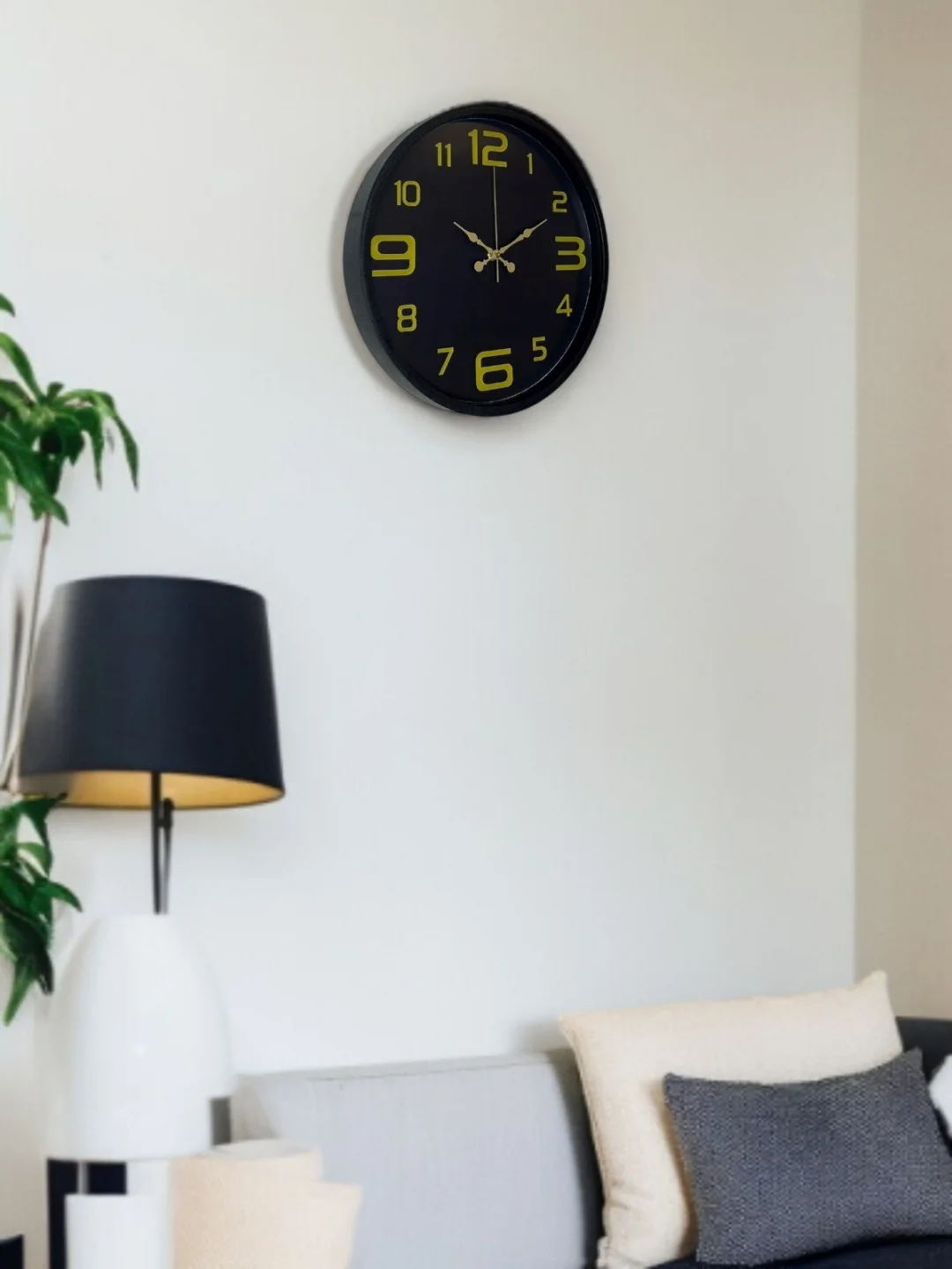 Mat siyah çerçevesi ve koyu kadranı üzerinde yer alan altın tonlu rakamları ile tasarlanan bu 36 cm duvar saati, bulunduğu ortama güçlü ve sofistike bir karakter kazandırır. Yüksek kontrastlı tasarımı sayesinde saati uzaktan bile net şekilde okumak mümkündür.