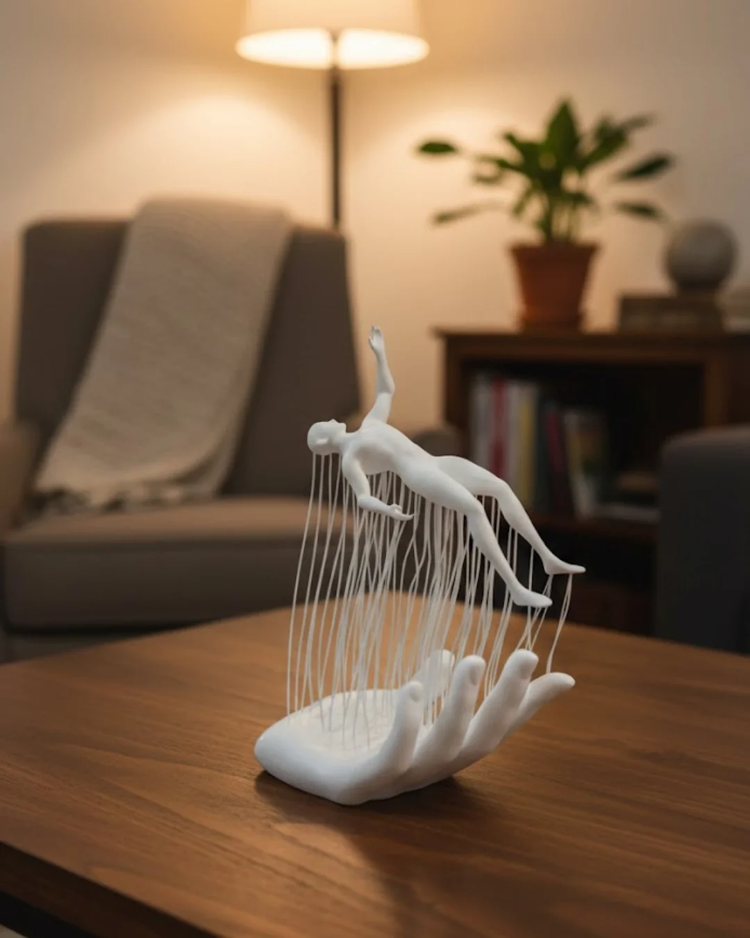 Modern dekorasyon anlayışını yansıtan 3D El İnsan Figürü Beyaz, soyut tasarımıyla mekanlara sanatsal bir dokunuş ekler. El formu ve insan figürünün birleşimi, estetik ve anlamı bir arada sunarak dekorasyonda fark yaratır.Beyaz renkli yüzeyi sayesinde sade, şık ve zamansız bir görünüm sağlar. Minimal, İskandinav, modern ve loft tarzı dekorasyonlarla uyumlu yapısı sayesinde farklı yaşam alanlarında rahatlıkla kullanılabilir. Tek başına sergilendiğinde bile dekorasyonu tamamlayan güçlü bir obje olarak öne çıkar.Kompakt ölçüleri sayesinde masa üstü, raf veya konsol üzerinde dengeli ve zarif bir görünüm sunar. Evinde sanatsal detaylara yer vermek isteyenler için ideal bir dekoratif üründür.