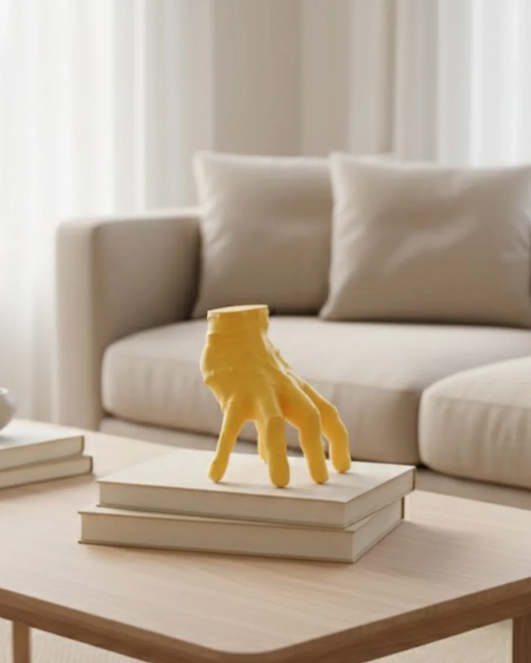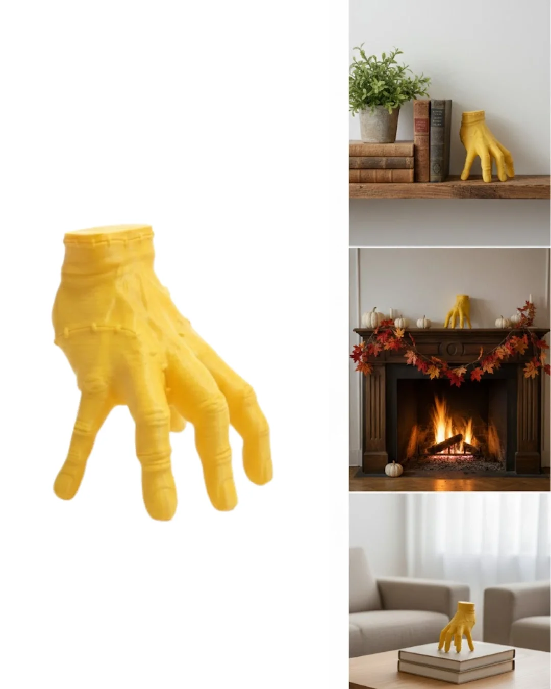 3D Sarı El Tasarım Dekor 17x16 cm, yaşam alanlarına karakter ve enerji kazandırmak için tasarlanmış özel bir dekoratif objedir. Cesur rengi sayesinde bulunduğu alanda dikkat çeker ve modern bir atmosfer oluşturur.Şömine üstünde kullanıldığında sıcak ışıkla birleşerek etkileyici bir ambiyans sunar. Masa üstünde minimalist bir lamba ile birlikte kombinlendiğinde çağdaş bir görünüm elde edilir.Ev, ofis ve konsept dekorasyon projeleri için uygundur.