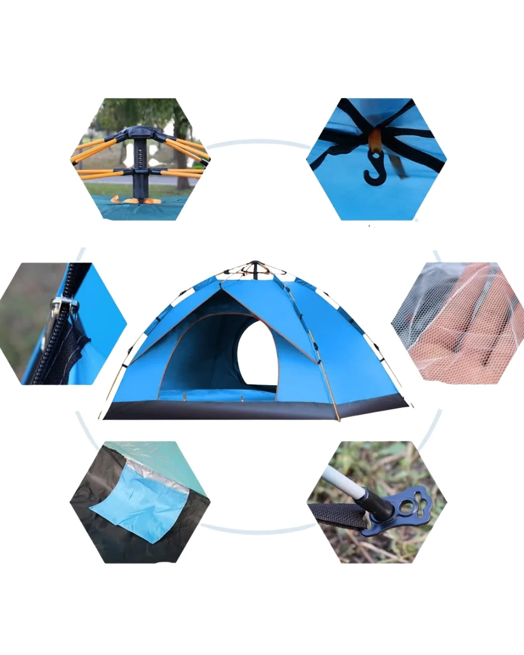 Doğa ile baş başa kalmak isteyenler için tasarlanan bu otomatik kamp çadırı, pratik kullanım özellikleri ve dayanıklı yapısı ile kamp deneyimini üst seviyeye taşır. 200x135x135 cm genişliğindeki iç hacmi sayesinde iki ila üç kişinin rahatlıkla konaklayabileceği ferah bir alan sunar. Kompakt yapısı ile hem genişlik hem de taşınabilirlik açısından dengeli bir kullanım sağlar.Ürünün en dikkat çeken özelliği otomatik kurulum sistemidir. Geleneksel çadırlarda yaşanan kurulum zorluğunu tamamen ortadan kaldırır. Tek hareketle açılan mekanizması sayesinde saniyeler içinde kurulabilir ve kullanıma hazır hale gelir. Özellikle kamp deneyimi olmayan kullanıcılar için büyük kolaylık sağlar.Su geçirmez dış yüzeyi sayesinde yağmur, nem ve dış etkenlere karşı etkili bir koruma sunar. Zemini suya dayanıklı yapıdadır ve nemin içeri girmesini engeller. Bu sayede kamp sırasında kuru ve konforlu bir alan oluşturur. Outdoor aktivitelerde güvenle tercih edilebilir.Çadırın iç tasarımı hava sirkülasyonunu destekleyecek şekilde geliştirilmiştir. Nefes alabilen kumaşı sayesinde içeride havasızlık oluşmaz ve ferah bir ortam sağlar. Uzun süreli kullanımlarda bile kullanıcı konforunu korur.Hafif ve taşınabilir yapısı sayesinde çadırı istediğiniz yere kolayca götürebilirsiniz. Katlanabilir özelliği sayesinde az yer kaplar ve taşıma çantası ile birlikte pratik bir şekilde saklanabilir. Kamp, piknik, festival, sahil ve doğa yürüyüşleri gibi birçok farklı kullanım alanına uygundur.Modern ve sportif tasarımı sayesinde hem estetik hem de fonksiyonel bir üründür. Doğada dikkat çekmeden uyum sağlar ve kullanıcıya keyifli bir deneyim sunar.