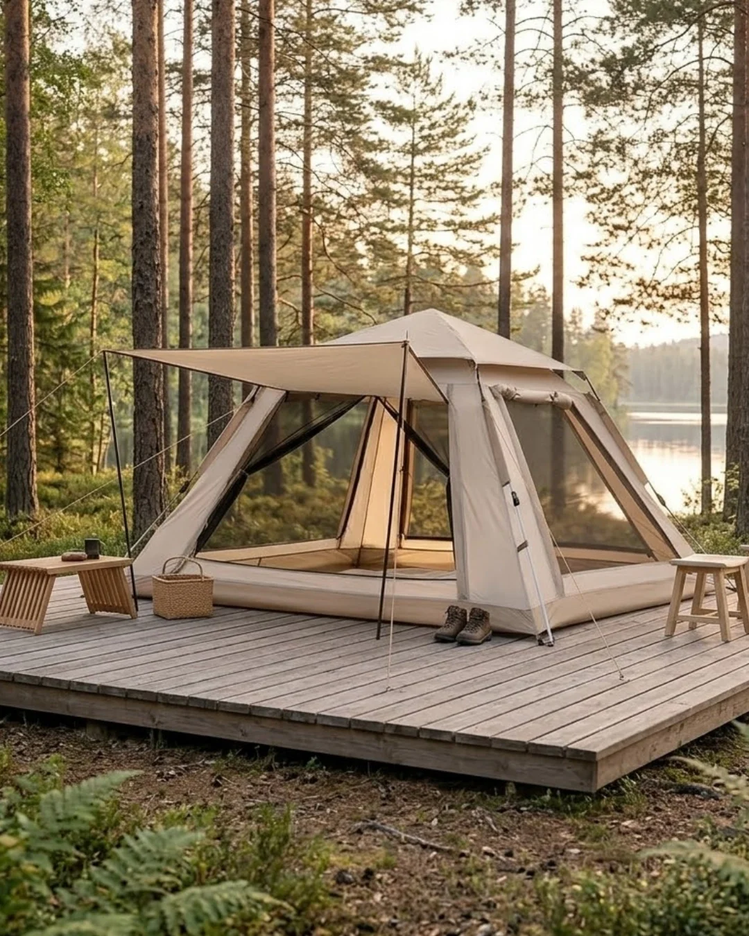 Doğada geniş ve konforlu bir alan sunan bu kamp çadırı, pratik kullanımı ve dayanıklı yapısı ile dikkat çeker. 240x240 cm taban ve 160 cm yükseklik ölçülerine sahip olan bu çadır, 6 kişinin rahatlıkla konaklayabileceği geniş bir alan sunar.Geniş iç hacmi sayesinde konforlu bir kullanım sağlar. Güneşlikli yapısı sayesinde ekstra alan sunar.Otomatik kurulum sistemi sayesinde kolay kullanım sağlar. Su geçirmez yapısı sayesinde dış etkenlere karşı koruma sunar.Havalandırma sistemi sayesinde ferah bir ortam oluşturur.