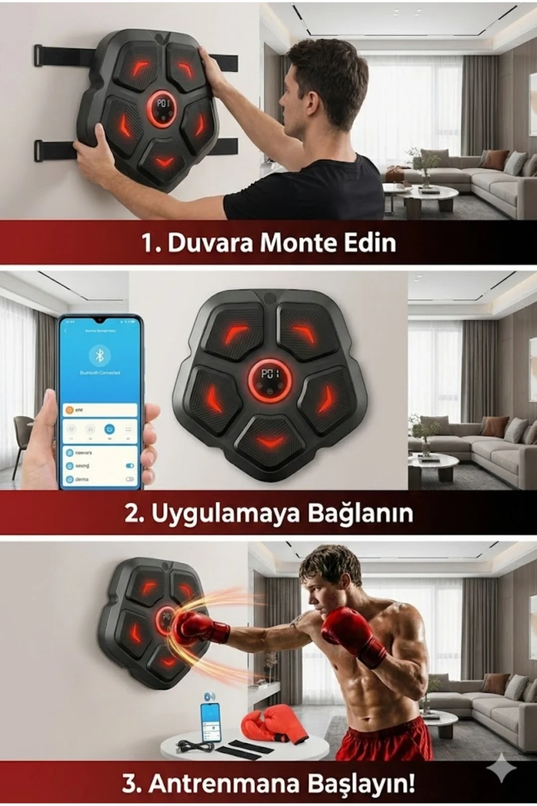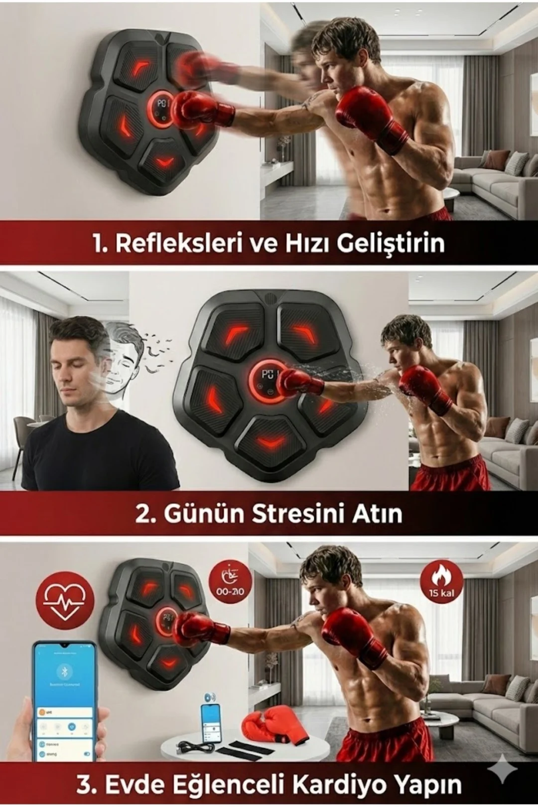 Mey İthalat® Akıllı Duvar Boks Hedefi: Bluetooth Müzikli, Işıklı Refleks ve Stres Atma
