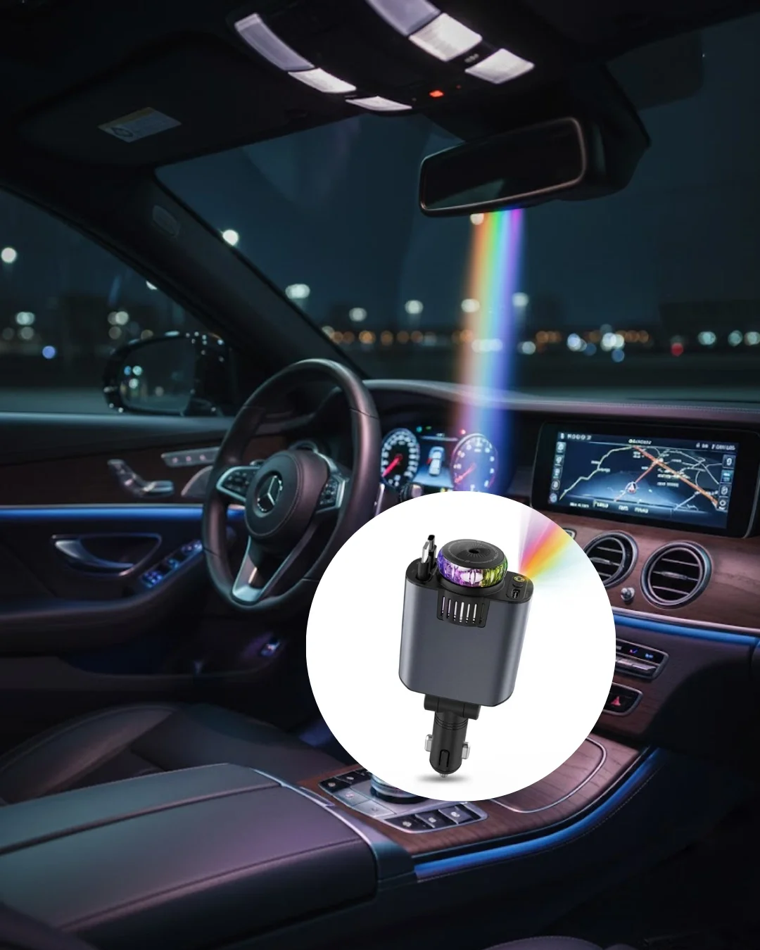 Araç İçi Çok Fonksiyonlu Şarj Cihazı Hava Nemlendirici Aroma ve Yıldız Işık, modern araç kullanıcılarının ihtiyaçlarına cevap verecek şekilde tasarlanmış yenilikçi bir üründür. Tek bir cihazda birden fazla işlev sunarak hem sürüş konforunu artırır hem de araç içi düzeni korur. Günlük kullanımda şarj ihtiyacını karşılarken aynı zamanda araç içi hava kalitesini iyileştirir ve estetik bir ambiyans oluşturur.Ürün, araç çakmak girişine takılarak çalışır ve farklı cihazlar için hızlı ve güvenli şarj imkanı sunar. Telefon, tablet, navigasyon cihazları ve diğer USB uyumlu ürünler için uygundur. Güç dağılımını otomatik olarak ayarlayarak cihazlarınızı korur. Uzun yolculuklarda veya yoğun kullanımda dahi stabil performans sağlar.Hava nemlendirici özelliği sayesinde özellikle klima kullanımına bağlı olarak araç içinde oluşan kuru havayı dengelemeye yardımcı olur. Bu özellik, boğaz kuruluğu ve rahatsız edici hava hissini azaltarak daha konforlu bir sürüş ortamı oluşturur. Nemlendirme sistemi sessiz çalışır ve sürüş esnasında dikkat dağıtmaz.Aromaterapi fonksiyonu ile birlikte gelen koku şişeleri sayesinde araç içinde ferah ve hoş bir atmosfer yaratabilirsiniz. Koku difüzörü, nemlendirme ile birlikte çalışarak kokunun dengeli şekilde yayılmasını sağlar. Bu sayede ağır ve rahatsız edici kokular oluşmaz.Ürünün yıldız ışık efekti, araç tavanına veya iç mekana yansıyarak estetik bir ambiyans sunar. Özellikle gece sürüşlerinde modern ve dikkat çekici bir görünüm sağlar. Işık efekti göz yormaz ve sürüş güvenliğini etkilemez.Kompakt ve şık tasarımı sayesinde araç içinde yer kaplamaz. Dayanıklı malzeme yapısı uzun ömürlü kullanım sunar. Kurulumu son derece kolaydır, ek aparata ihtiyaç duymaz. Araç içinde konfor, teknoloji ve estetiği bir arada isteyen kullanıcılar için ideal bir çözümdür.