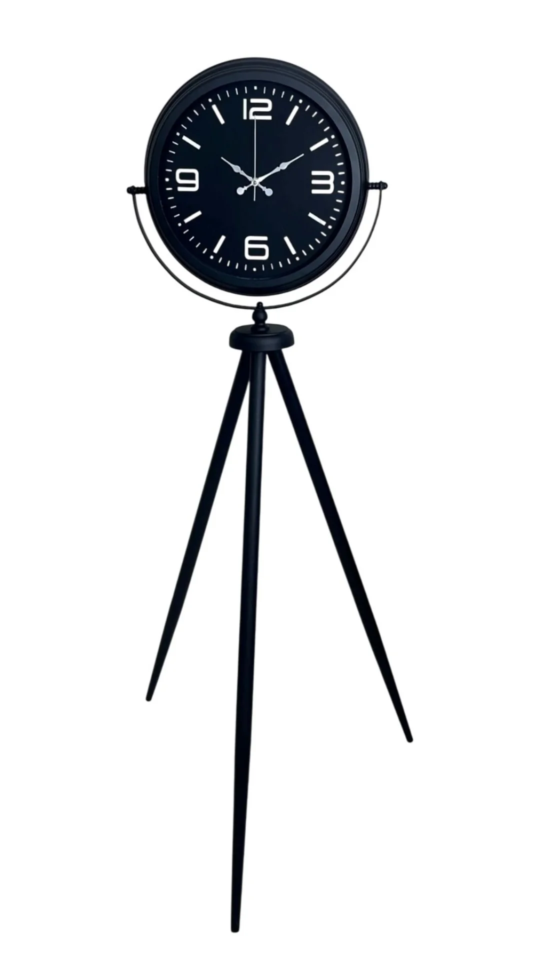 Modern dekorasyonun en güçlü tamamlayıcılarından biri olan Siyah Tripod Ayaklı Dekoratif Salon Saati, 150 x 45 cm ölçüsüyle bulunduğu ortamda dikkat çeken bir “tasarım objesi” etkisi oluşturur. Siyah metal tripod ayak yapısı, ürüne hem şık hem de dengeli bir duruş kazandırırken; modern indeks/çizgi detaylı siyah kadranı sayesinde minimal ve çağdaş bir görünüm sunar. Salon köşeleri, antreler, ofis girişleri, mağaza vitrinleri ve kafe/restoran dekorasyonlarında güçlü bir vurgu oluşturmak isteyenler için ideal bir seçimdir.