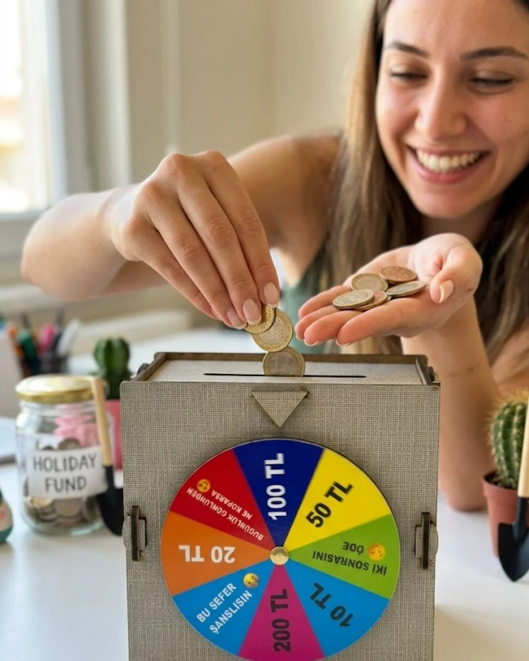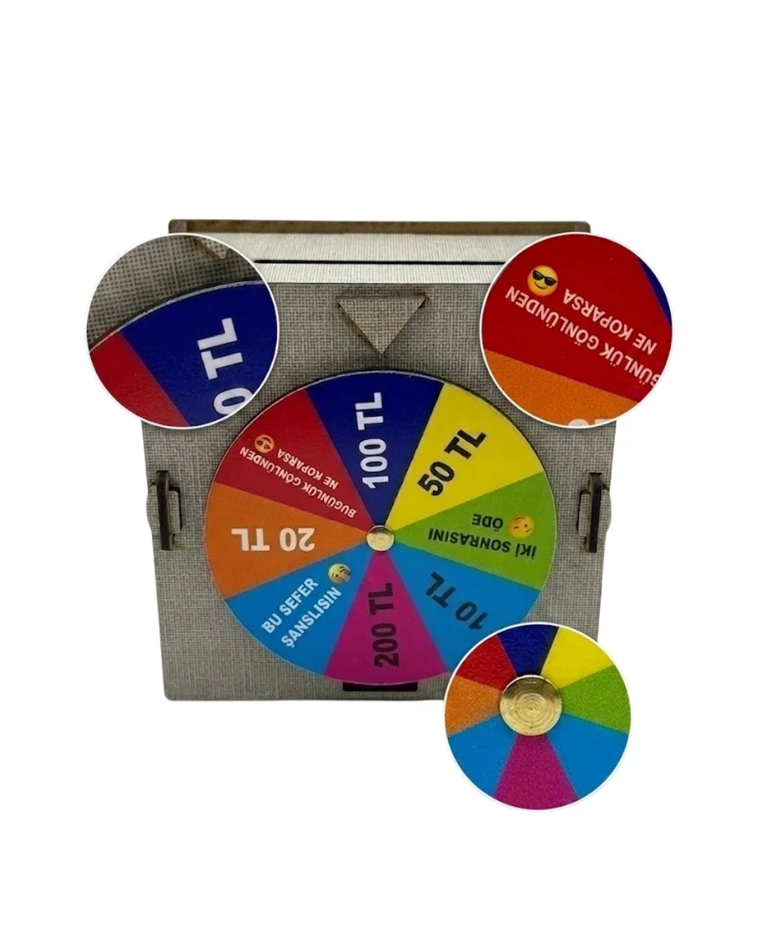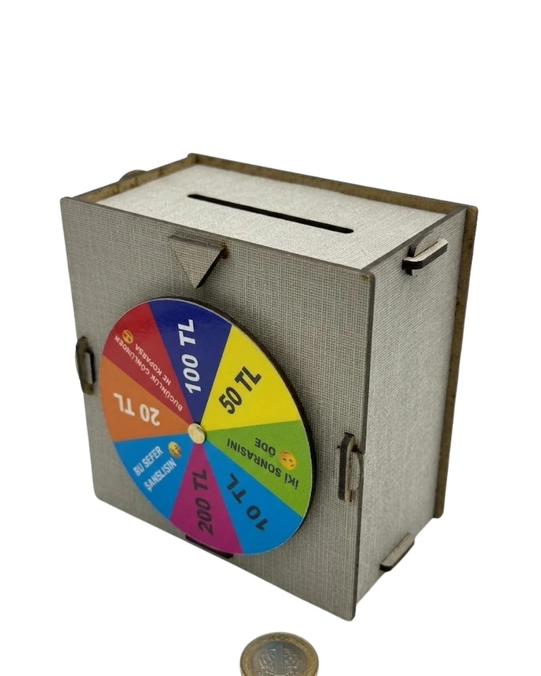 Dekoratif şans çarklı kumbara, tasarrufu eğlenceli hale getiren ve kullanıcıya farklı bir deneyim sunan özel bir üründür. Üzerinde bulunan şans çarkı sayesinde her kullanımda farklı bir sonuç elde edilir ve bu da kullanıcıyı motive eder. Para biriktirme sürecini oyunlaştırarak daha keyifli hale getirir.Geniş iç hacmi sayesinde uzun süreli kullanım sağlar. Dayanıklı malzeme yapısı ile uzun ömürlüdür.Çocuklar ve yetişkinler için uygundur. Eğlenceli yapısı ile dikkat çeker ve tasarrufu alışkanlık haline getirir.Modern ve şık tasarımı ile dekoratif bir ürün olarak da kullanılabilir.