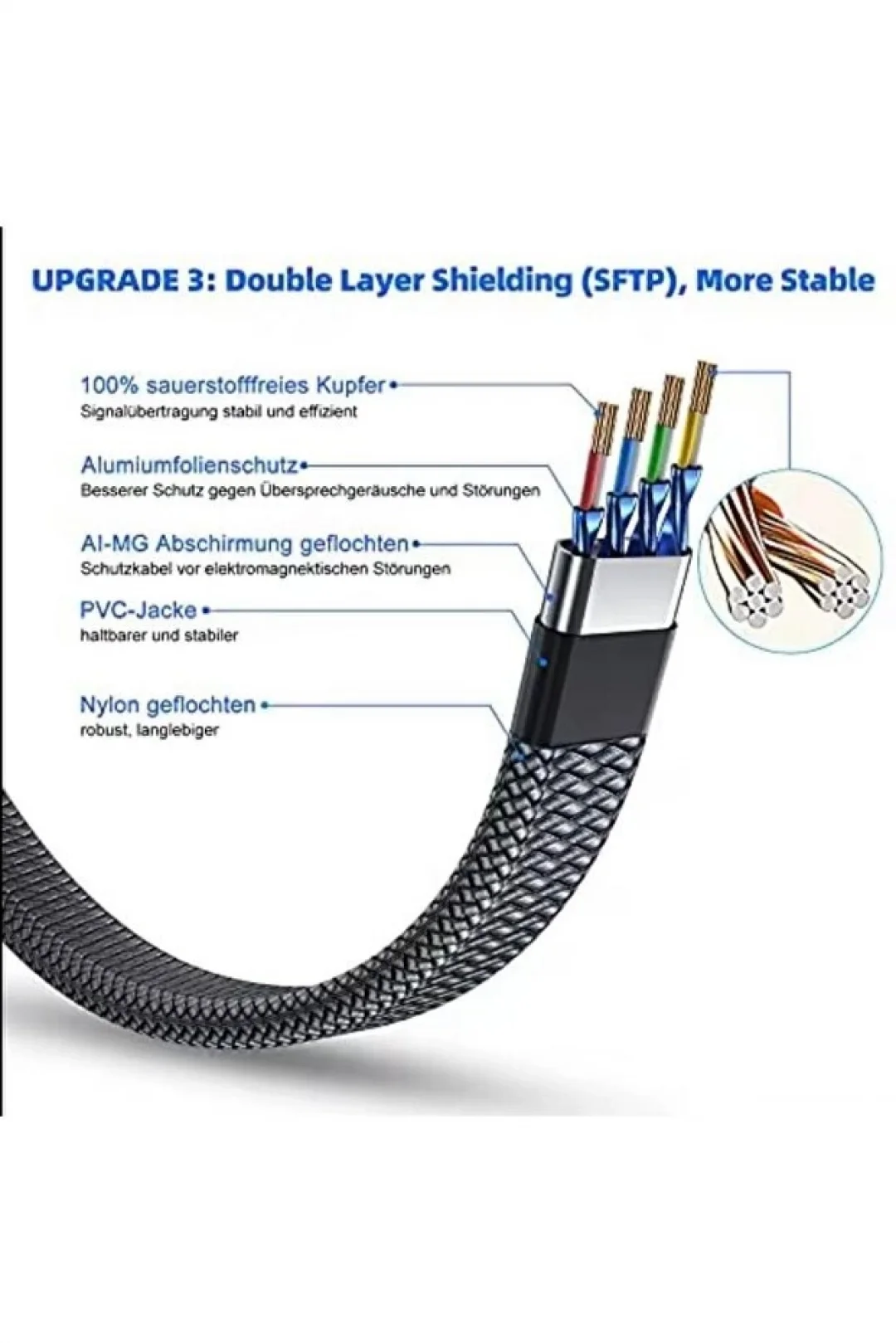 Mey İthalat® Cat 8 LAN Kablosu –Ethernet Kablosu Örgü Kaplama, Yüksek Hızlı