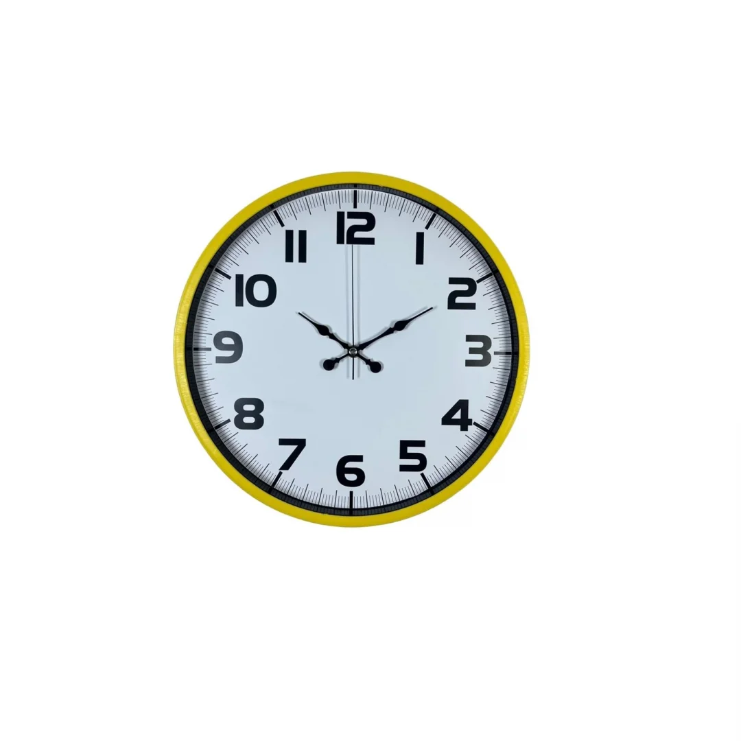Canlı sarı rengiyle dikkat çeken 36 cm duvar saati, bulunduğu ortama enerjik ve modern bir hava katar. Minimalist tasarımı sayesinde mutfak, salon, ofis ve çocuk odalarında rahatlıkla kullanılabilir. Beyaz kadranı ve net okunabilir rakamları ile zamanı kolayca takip etmenizi sağlar.