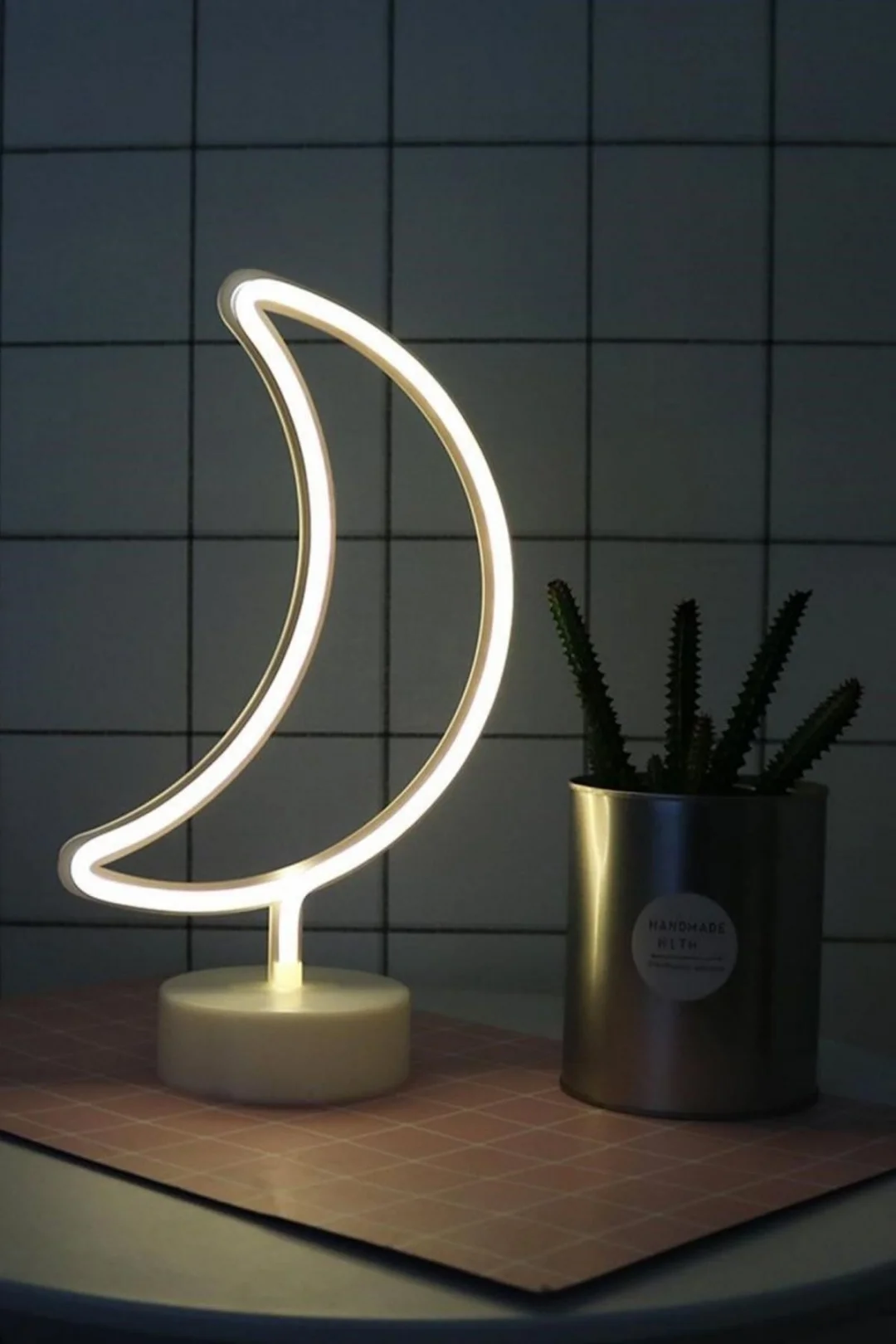 Bu dekoratif neon ışık ile yatağınızın yan masasına canlılık katabilirsiniz. Uzun kablolarla uğraşmamak adına zeminde kolayca durmasını sağlayacak bir tabana sahip olmakla birlikte pil ya da usb ile çalışabilmektedir.