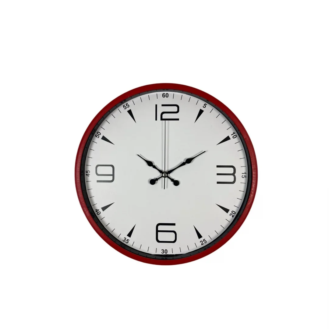 Canlı ve dikkat çekici kırmızı rengiyle öne çıkan 36 cm duvar saati, yaşam alanlarınıza enerjik ve modern bir hava katar. Kırmızı çerçevesi ve beyaz kadranı sayesinde güçlü bir kontrast oluşturarak hem estetik hem de kolay okunabilirlik sunar. Minimal tasarımı ile salon, mutfak, ofis ve çalışma alanlarında dekoratif bir tamamlayıcıdır.