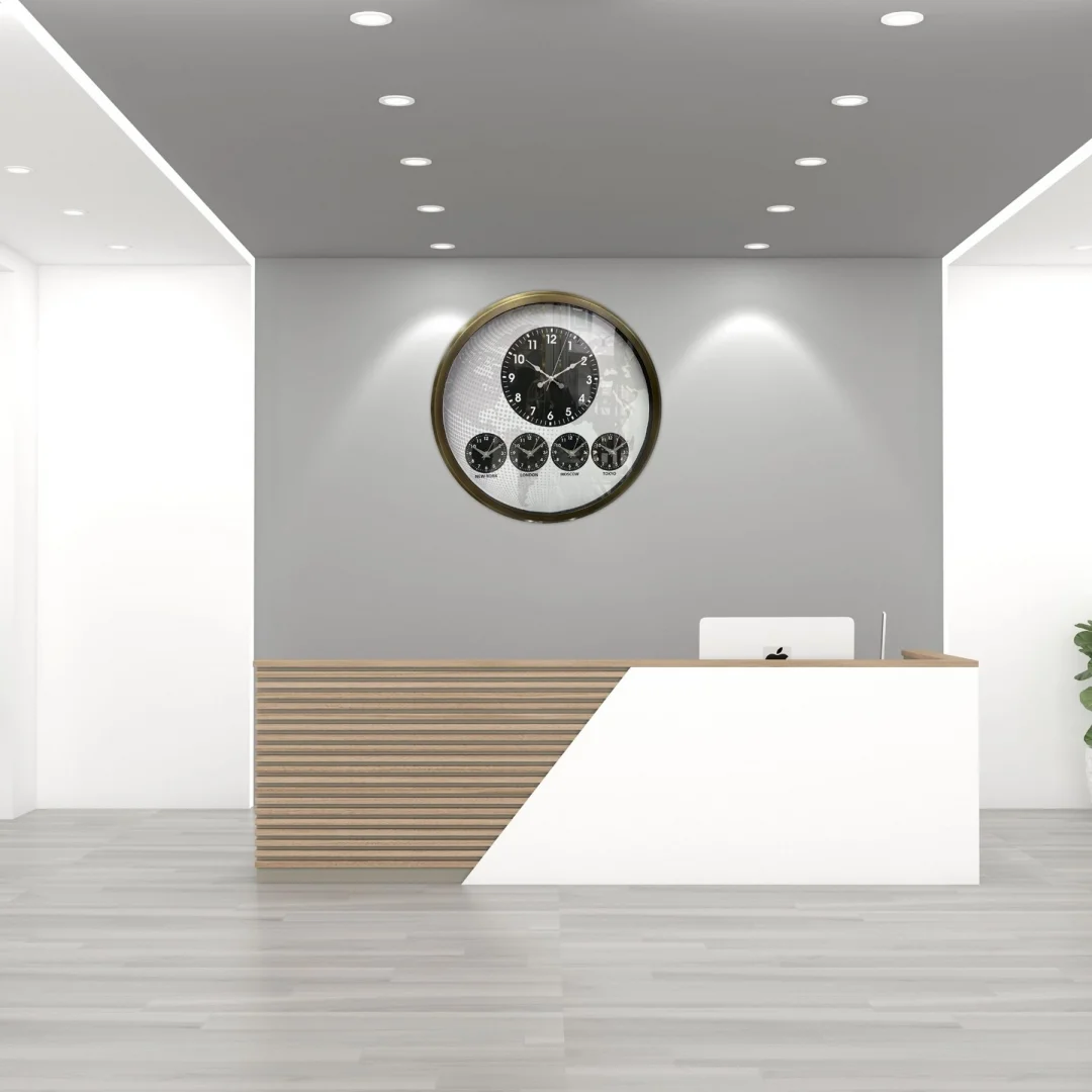 Merkezde büyük ana saat, alt bölümde ise New York – London – Moscow – Tokyo şehirlerine ait ayrı zaman göstergeleri bulunmaktadır. Özellikle uluslararası iş yapan firmalar ve dünya ile bağlantıda olan profesyoneller için hem fonksiyonel hem de dikkat çekici bir tasarım sunar.