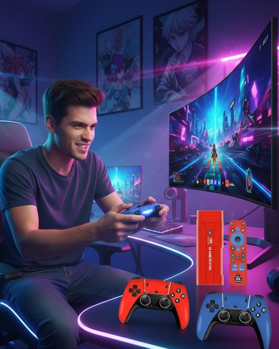 Android TV Game Stick, televizyonunuzda yüksek çözünürlüklü oyun ve medya deneyimi sunar. 10K HD çözünürlük desteği ile net görüntü sağlar.3D oyun desteği, akıcı performans ve güçlü işlemci sayesinde takılma olmadan oyun oynayabilirsiniz. 64GB dahili depolama alanı geniş kullanım sunar.Çift kumanda ile iki kişilik oyun oynanabilir. 5G WiFi internet desteği hızlı bağlantı sağlar.YouTube, Netflix, MYTV ve Magis hazır yüklüdür.Kutu içeriği tam set olarak gönderilmektedir.