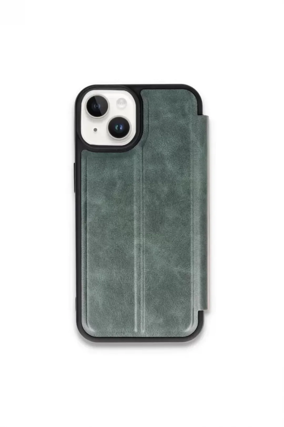 Mey İthalat® iPhone 15 Kılıf Flip Cover - Koyu Yeşil