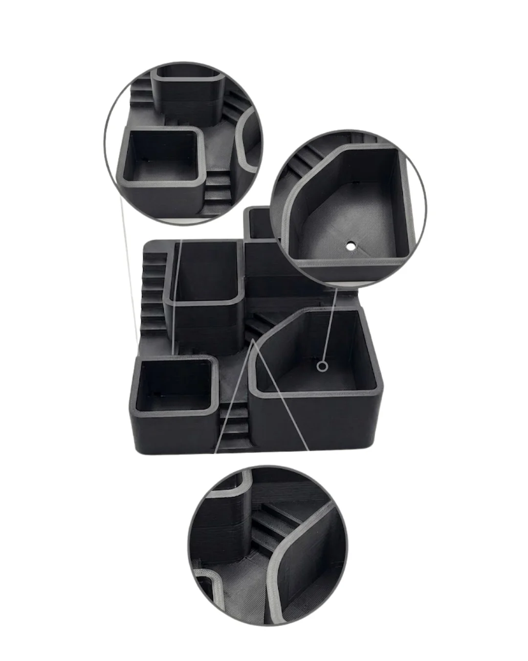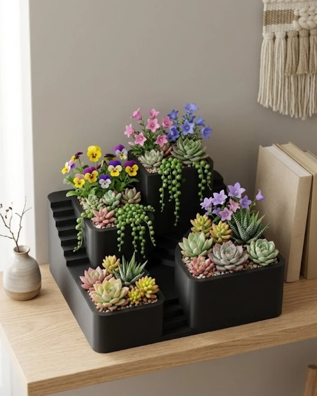 3D kaktüs saksı organizer, fonksiyonel tasarımı ile bitkilerinizi düzenli bir şekilde sergilemenizi sağlar. Çoklu bölmeli yapısı sayesinde farklı bitkileri tek bir platformda bir araya getirir ve estetik bir düzen oluşturur. Özellikle küçük alanlarda maksimum verim sağlamak isteyen kullanıcılar için idealdir.Modern ve sade tasarımı sayesinde her ortamda rahatlıkla kullanılabilir. Çalışma masasında kullanıldığında hem motivasyonu artırır hem de ortama doğal bir enerji katar. Aynı zamanda dekoratif bir obje olarak da kullanılabilir.Ürün, 3D baskı teknolojisi ile üretilmiştir ve bu sayede hem hafif hem de dayanıklıdır. Uzun süreli kullanım için uygundur. Katmanlı yüzey dokusu ürüne özgün bir görünüm kazandırır.Bitkilerinizin daha düzenli görünmesini sağlar ve bakım sürecini kolaylaştırır. Ayrıca taşınabilir yapısı sayesinde istediğiniz alana kolaylıkla yerleştirebilirsiniz.Anahtar kelimeler: 3D saksı organizer, masaüstü saksı, bitki standı, kaktüs saksı