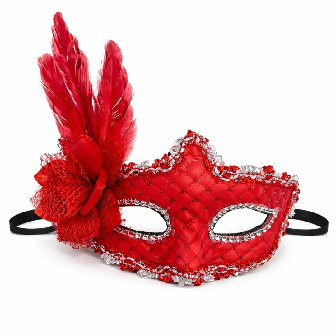 Kırmızı rengin enerjisi ile kombinlerinizi tamamlayan bu maske; karnaval, balo, kostüm partileri ve özel organizasyonlar için mükemmel bir tercihtir.