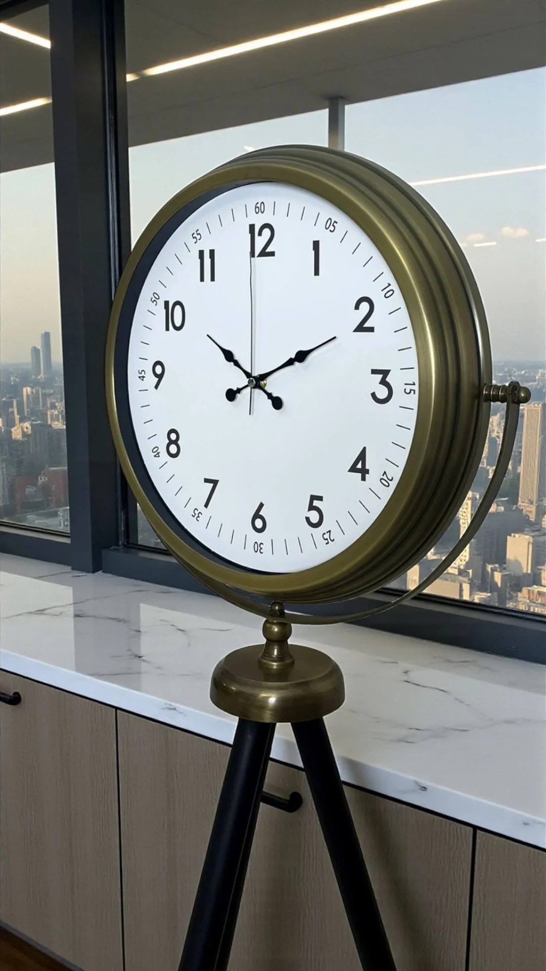 Tripod (üç ayaklı) yapısı sayesinde duvar montajına ihtiyaç duymaz. Dilediğiniz alana kolayca yerleştirilebilir ve taşınabilir. Salon köşeleri, ofisler, giriş holleri, otel lobileri, kafe ve restoranlar için dekoratif bir tamamlayıcıdır. Büyük boy yapısı sayesinde yalnızca bir saat değil, aynı zamanda mekânın odak noktası olan dekoratif bir obje görevi görür.