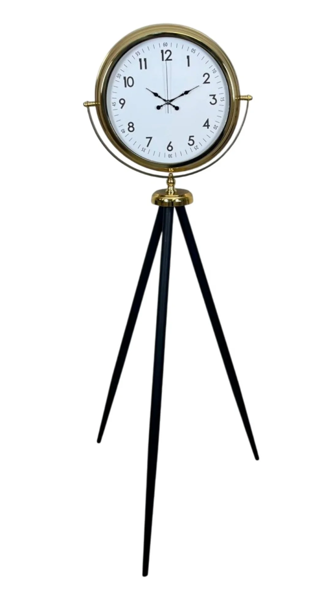 Zarif detayları ve güçlü duruşuyla öne çıkan gold tripod ayaklı dekoratif saat, bulunduğu mekâna sofistike ve prestijli bir hava katar. Klasik saat formu ile modern tripod ayak tasarımının birleşimi, bu modeli sıradan ayaklı saatlerden ayırarak dekorasyonun odak noktası haline getirir.